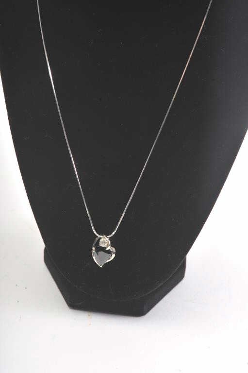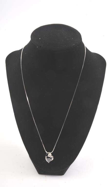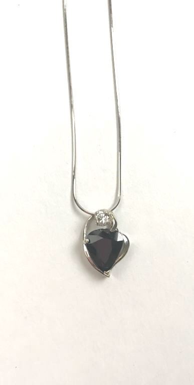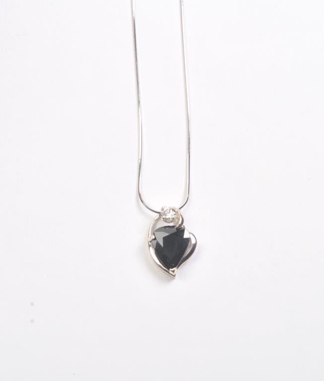 One beautiful heart shape dark blue sapphire weighing approx 5ct in a 18k white gold setting with a 0.20ct accent diamond Est:$750-1500