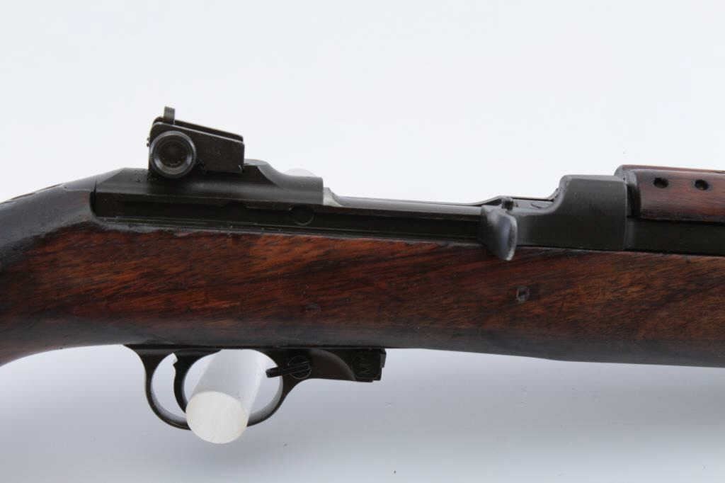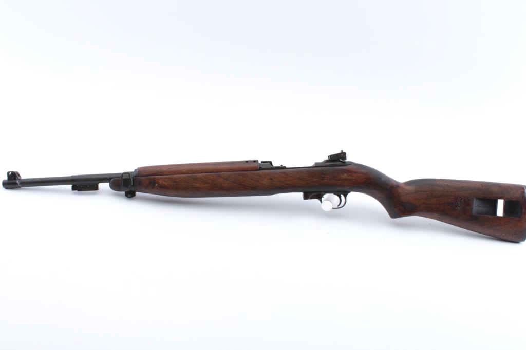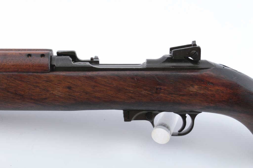 U.S. M1 semi-automatic carbine, receiver marked “Saginaw S’ G’, .30 caliber, 18” Inland-marked barrel dated 10-43, no magazine, bayonet lug, flat bolt, military finish, wood stock with “2342” stamped onbottom of semi-pistol grip and star over FAT/32 cartouche on right side of butt stock, S/N 3607140; overall good to very good condition showing majority of military finish remaining on metal surfaces, good bore,crisp action, sharp markings, good wood stock showing scattered minor mars from carry and storage. (C&R). Est.: $500-$1,000.