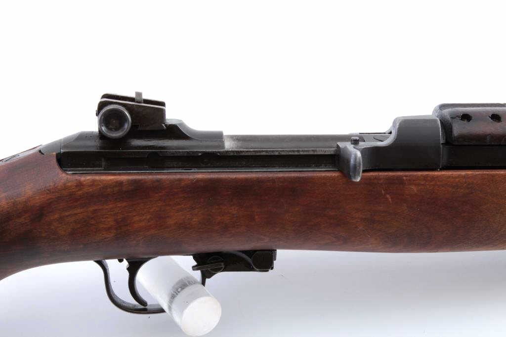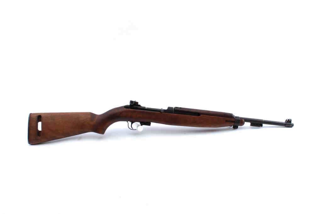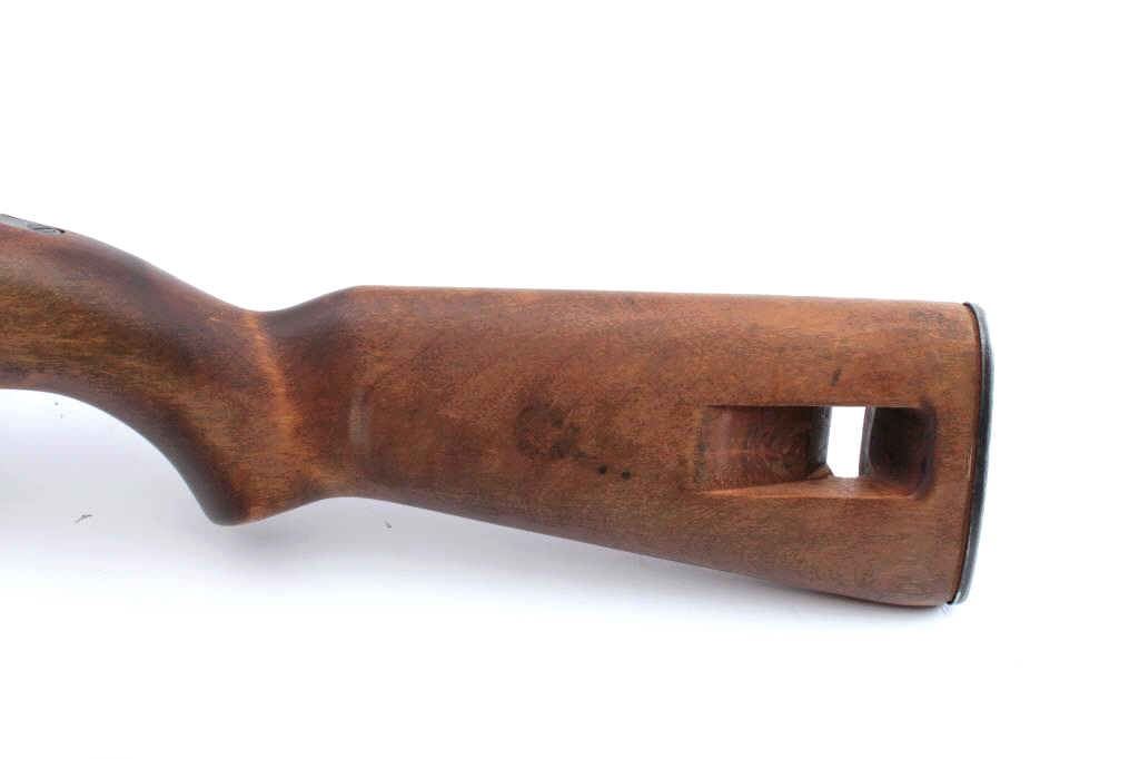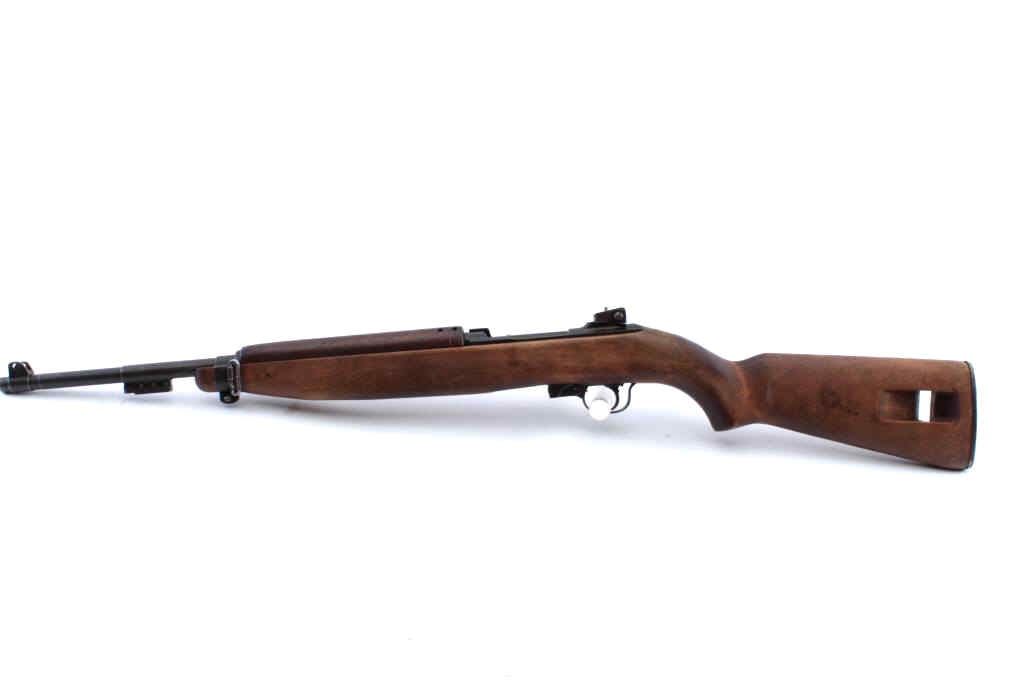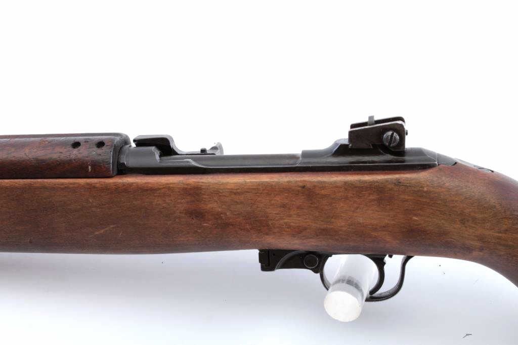 U.S. M1 semi-automatic carbine by Rockola, .30 caliber, 18” barrel, Rockola barrel, bayonet lug, round bolt, military finish, wood stock “123” stamped twice on the bottom of the stock, S/N 4599211; overall good tovery good condition showing majority of military finish to metal surfaces, good bore, crisp action, sharp markings and good to very good wood stock displaying some minor old scratches from carry and storage.(C&R). Est.: $500-$1,000.
