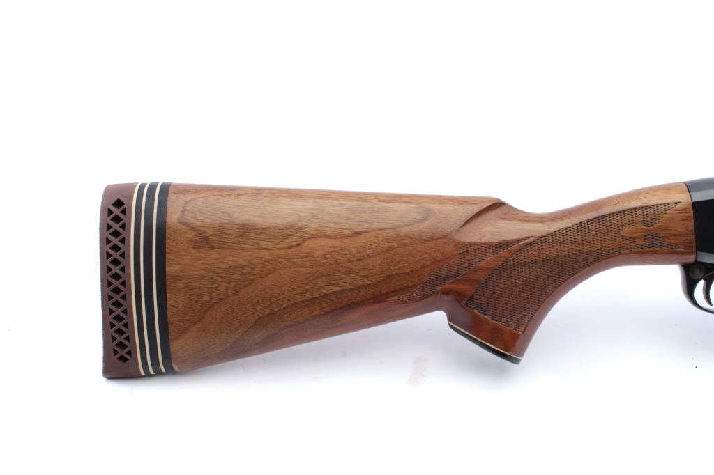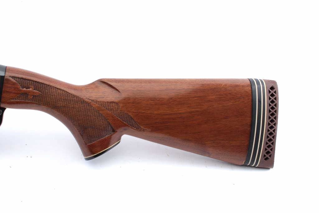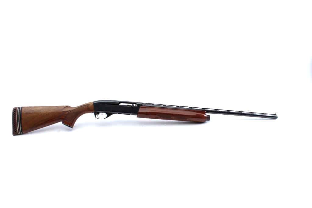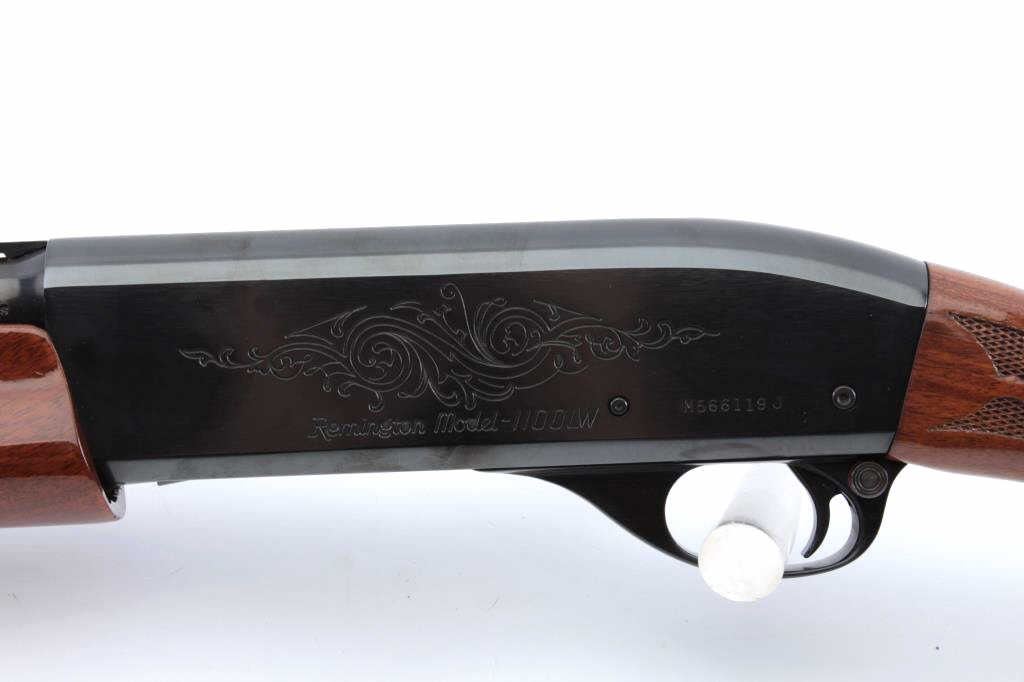 Remington Model 1100 LW semi-automatic shotgun, 28 gauge, Serial #M566119J. The shotgun is in fine overall condition with a 25” barrel with a full-length ventilated rib and ivory bead front sight. The metalsurfaces retain nearly all the blue finish with light storage marks noted. The checkered wood stocks are in very good condition with small mars and abrasions consistent with field use. The butt stockends with a 1” spacer and ventilated rubber pad providing a 13 ¾” LOP. The bore is good, the action is crisp and the markings are sharp. Est.: $500-$1,000. (Modern).