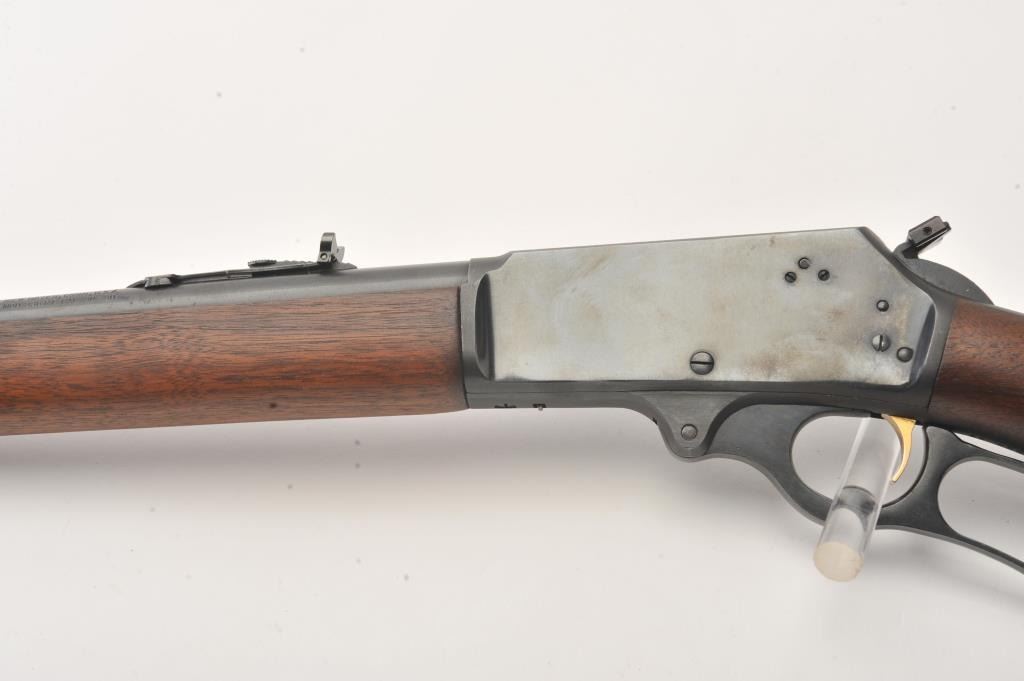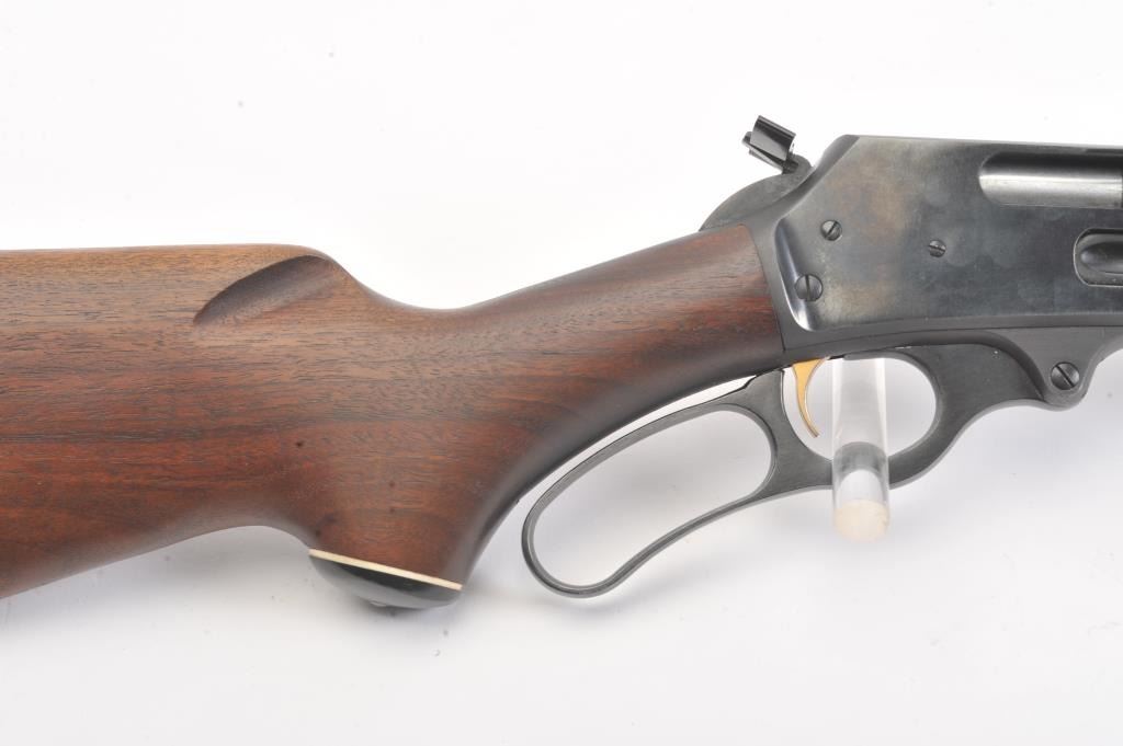 Marlin Model 336-RC lever action rifle, #6898649, .30-30 Win. cal., 20" barrel, rifle sights, blue finish, smooth wood stock with Marlin plastic butt plate. Rifle is in fine condition overall, retaining 96-98% originalblue, with light freckling starting on the barrel. The bore is bright with strong rifling, the action is crisp, the stock is very good with light dings, scratches, and mars from carry and use. A nice early 336 in very nice condition. (C&R/PPT) Est. $250-500