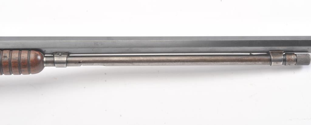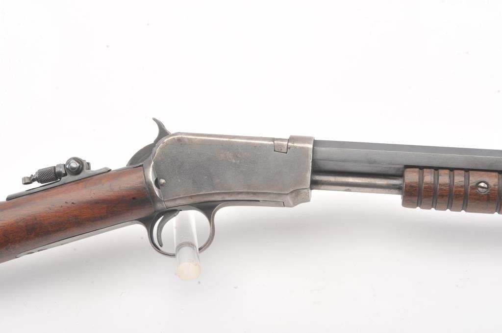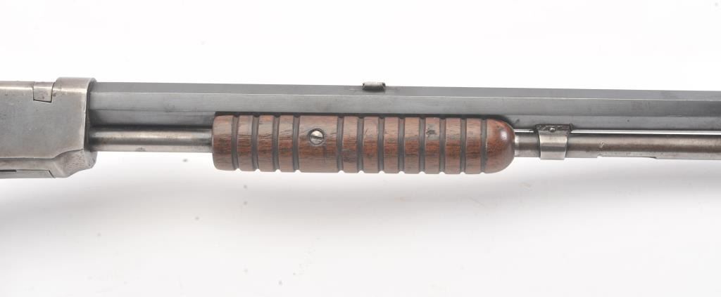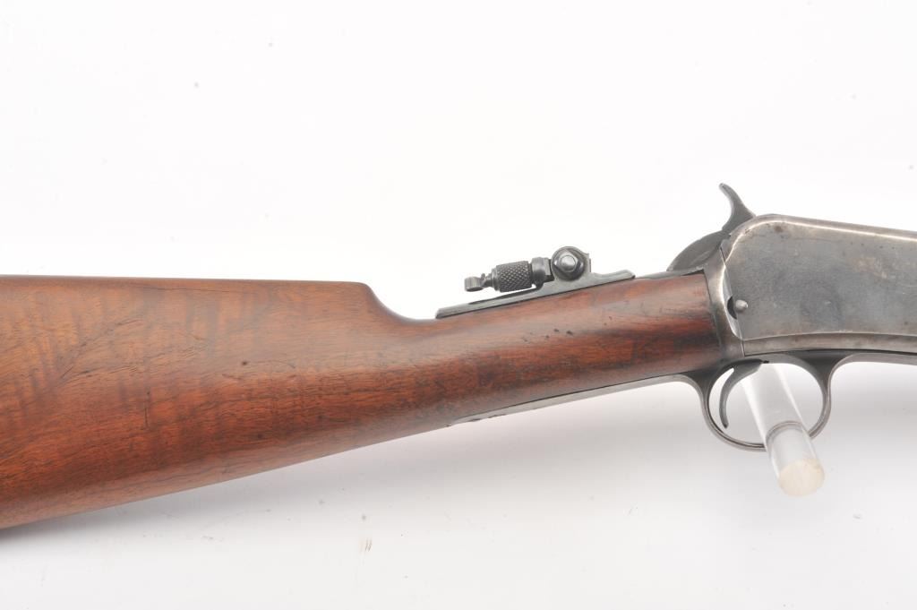 Winchester Model 90, #5A (renumbered, possibly by the factory), .22 LR cal., 24" octagon barrel, blued finish, tang sight, with smooth walnut stock. The rifle is in very good to fine condition overall, havingbeen rebarreled by the factory. It retains 90%+ blue, 60% original blue remaining on the frame. Very good bore, tight action, very good stock with some nicks and dings, slightly proud in several areas. (C&R) Est. $800-1600