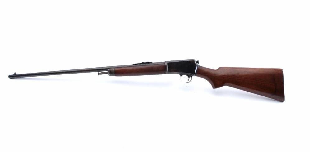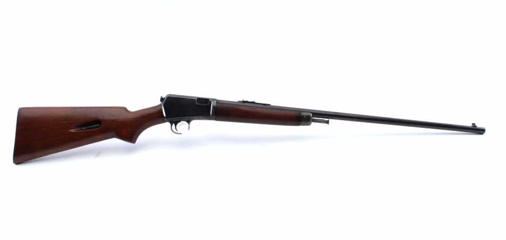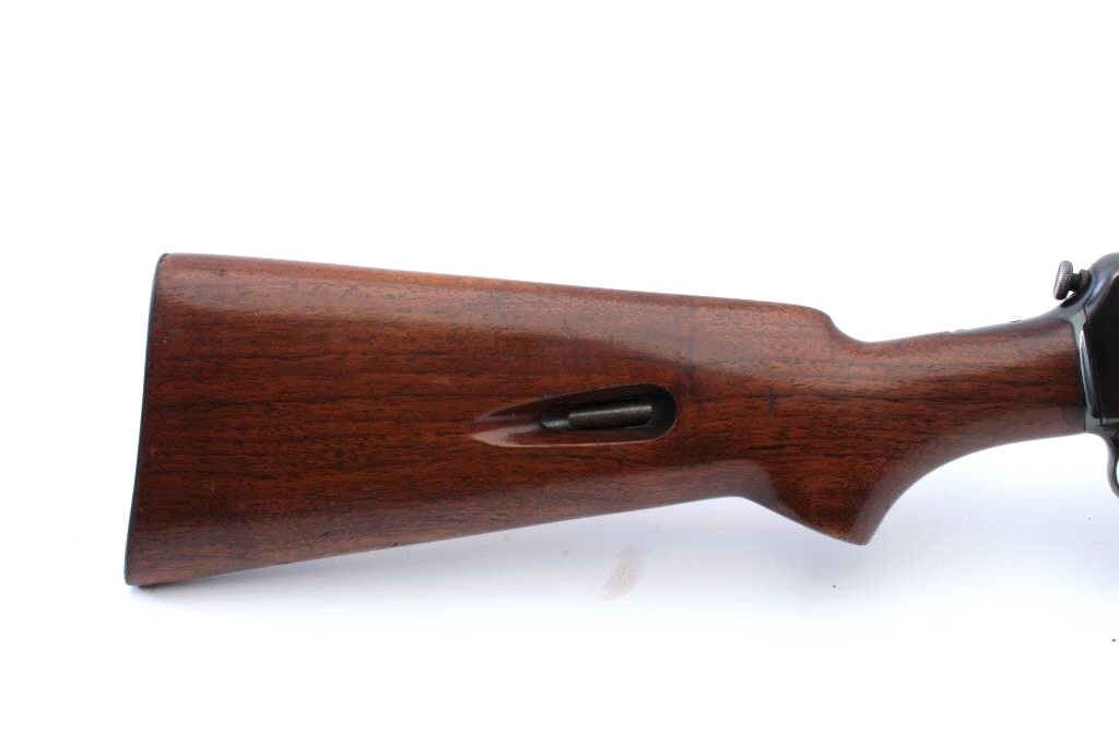 Winchester Model 63 semi-automatic rifle, .22 Long Rifle Super Speed & Super-X caliber, Serial #46818A. The rifle is in very good overall condition with a 23” barrel. The barrel and receiver both retain a significant amount of muted blue finish with high point edge wear. The smooth wood stocks are in very good condition with small mars and compressions. The bore is good, the action is crisp and the markings are sharp. Est.:$400-$800. (C+R).