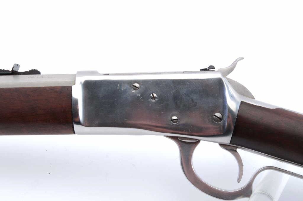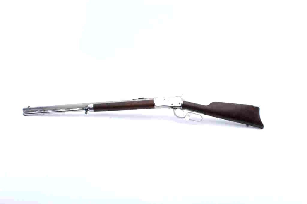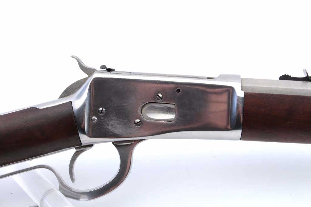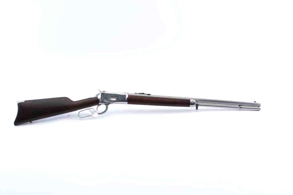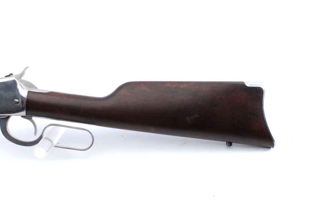 Rossi Puma Model 92, #SK115149, .38/.357 Mag. cal., 24 1/4" octagon barrel, stainless, full mag, with smooth walnut stock. The rifle is in fine condition overall, with excellent bore, great action, and very goodstock, showing light handling marks from storage and use. A very popular cowboy action rifle in a great caliber. (Modern) Est. $300-600