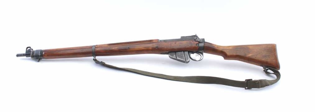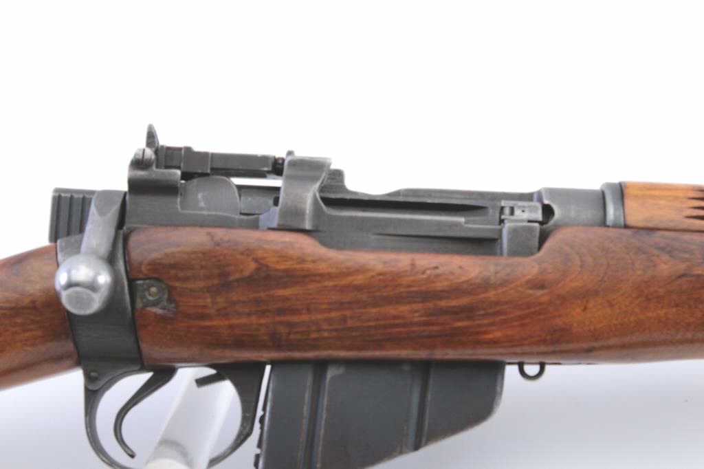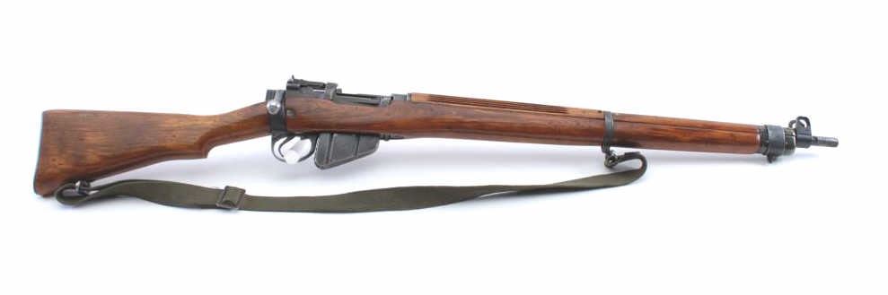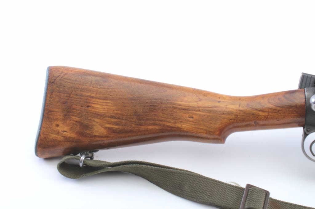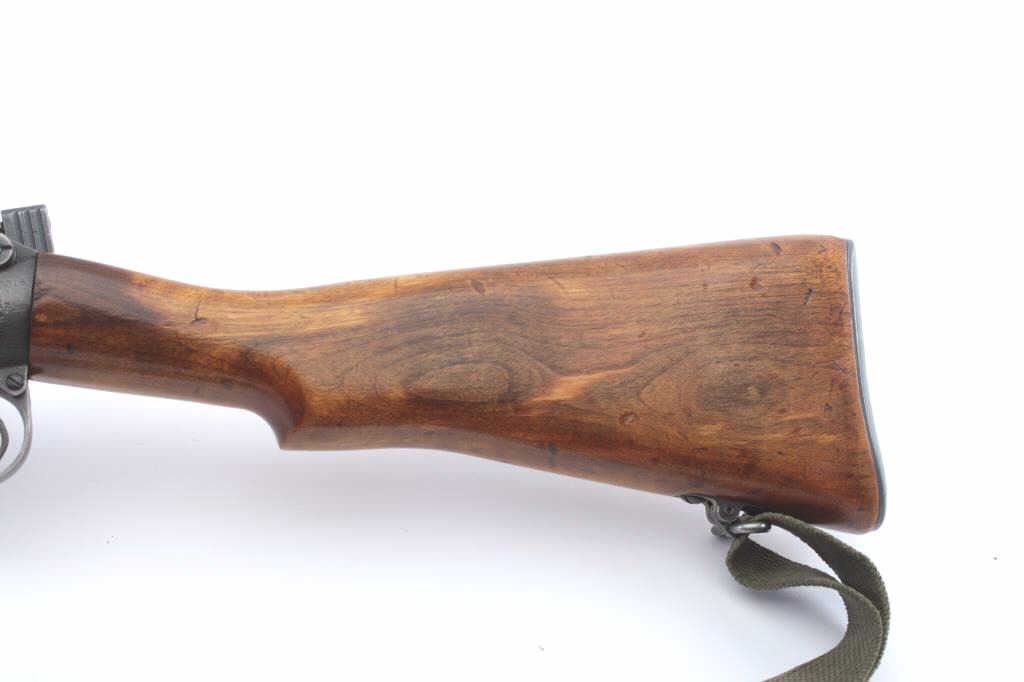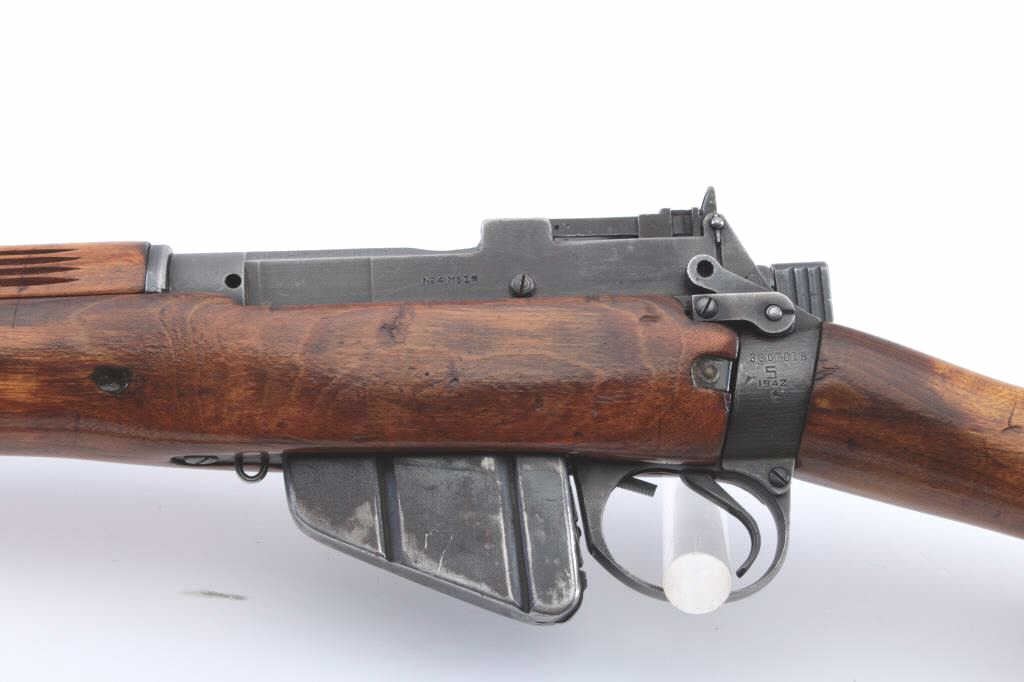 US Property marked Savage Enfield No 4 Mk 1*, #33C7018, .303 British cal., 25 1/4" barrel., parkerized finish, plain wood stock with canvas sling. Rifle is in very good condition overall, retaining approximately80-90% parkerized finish, bore is bright with strong rifling, action is very good, flaming bomb proofs on small parts. Stock has Savage proof behind trigger guard. Stock was lightly sanded and varnished. Includes onecorrect mag. (C&R) Est. 250-500