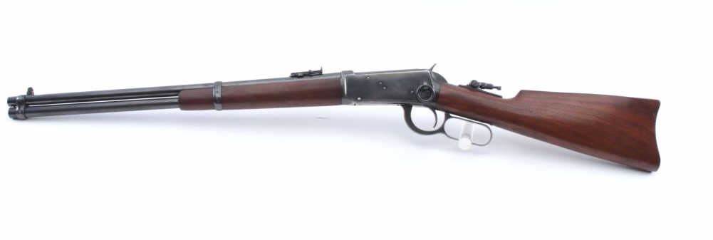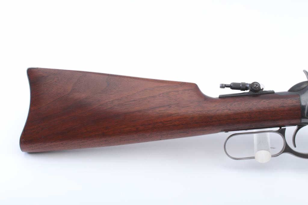 Winchester Model 1894 SRC, #929943, .32 Win. Spl. cal., 20" barrel, blued finish, Marble's tang sight, with smooth walnut stock. The rifle is in fine plus condition overall, retaining over 95% original blue, withapproximately 90%+ blue on the frame. The bore is good with light erosion, good action, and the stock is very good plus. Manufatured in 1923. (C&R) Est. $600-1200
