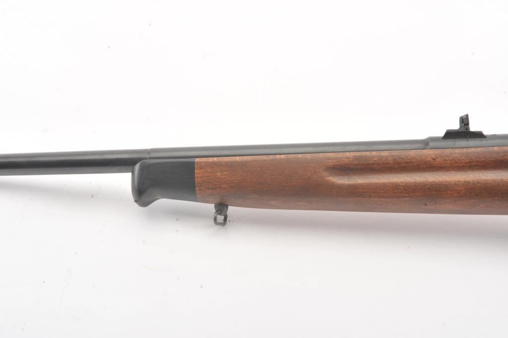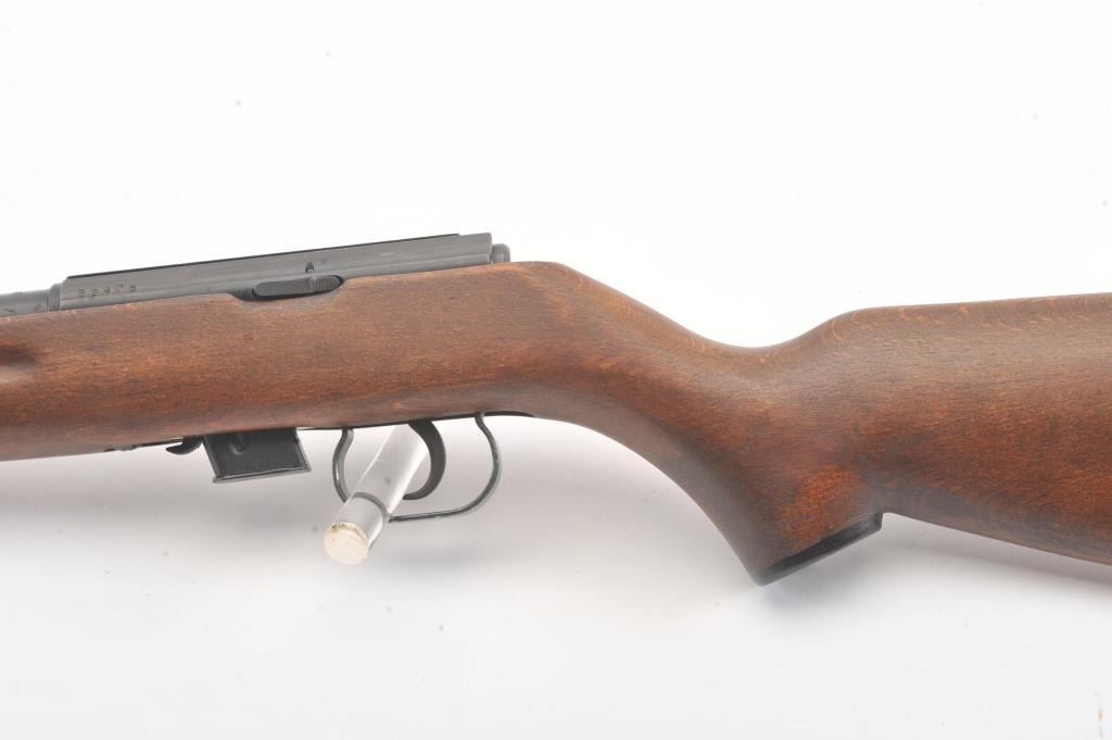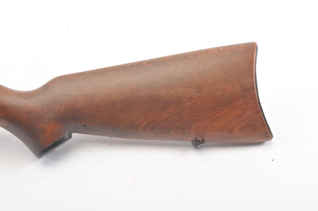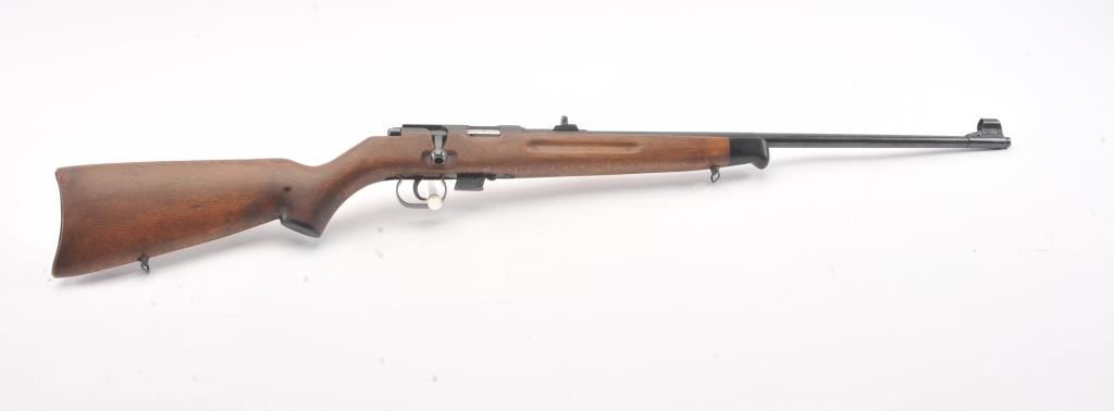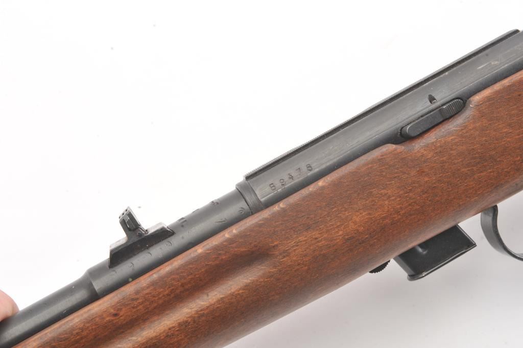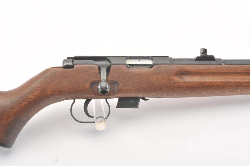 Romanian M-1969 training rifle, #B9478, .22 LR cal., 23 1/4" barrel, flip up rear sights, detachable magazine, plain wood stock with sling swivels. This rifle remains in excellent condition overall, over 98%original blue remains, stock is fine plus, mint bore, good action. Only minor storage and handling marks. One mag included. (Modern) Est. $150-300