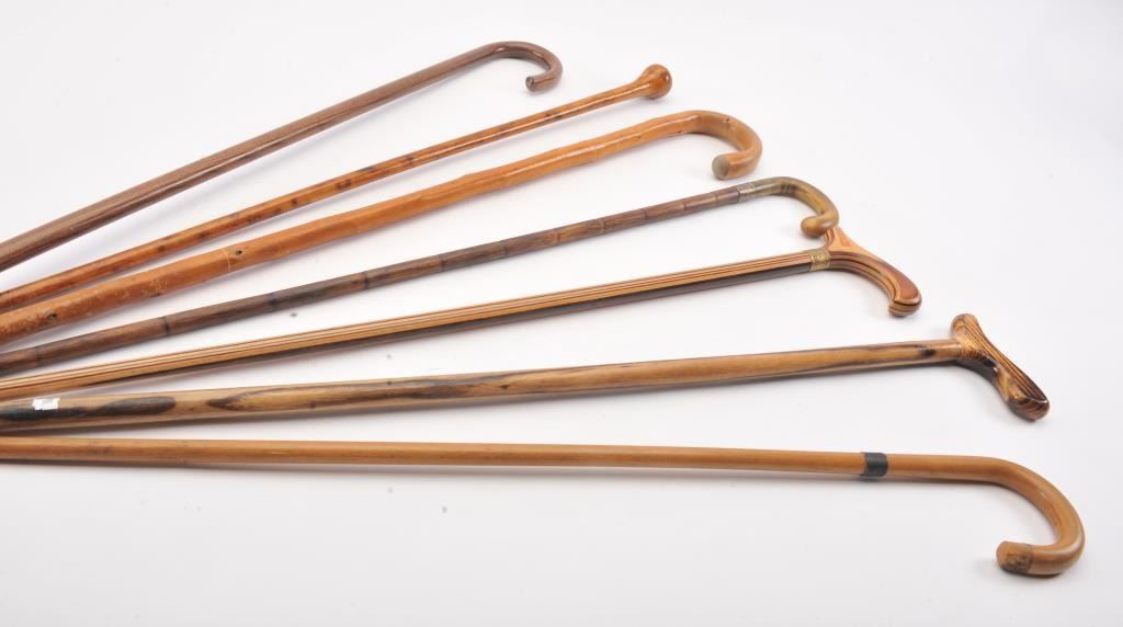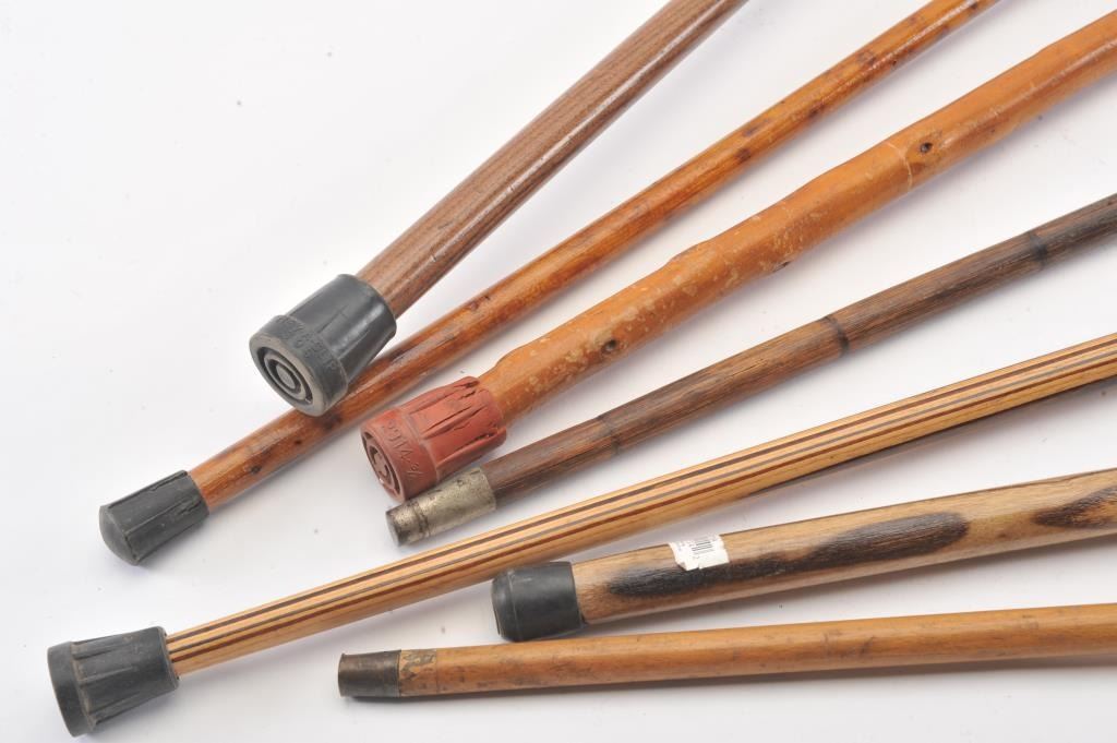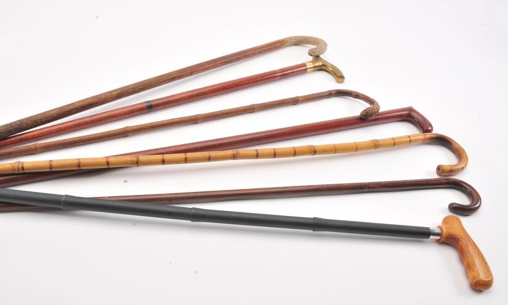 Bonanza lot of vintage walking canes (total of 23) and 6 umbrellas; a lifetime collection! Est.: $100-$200.