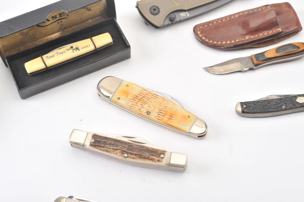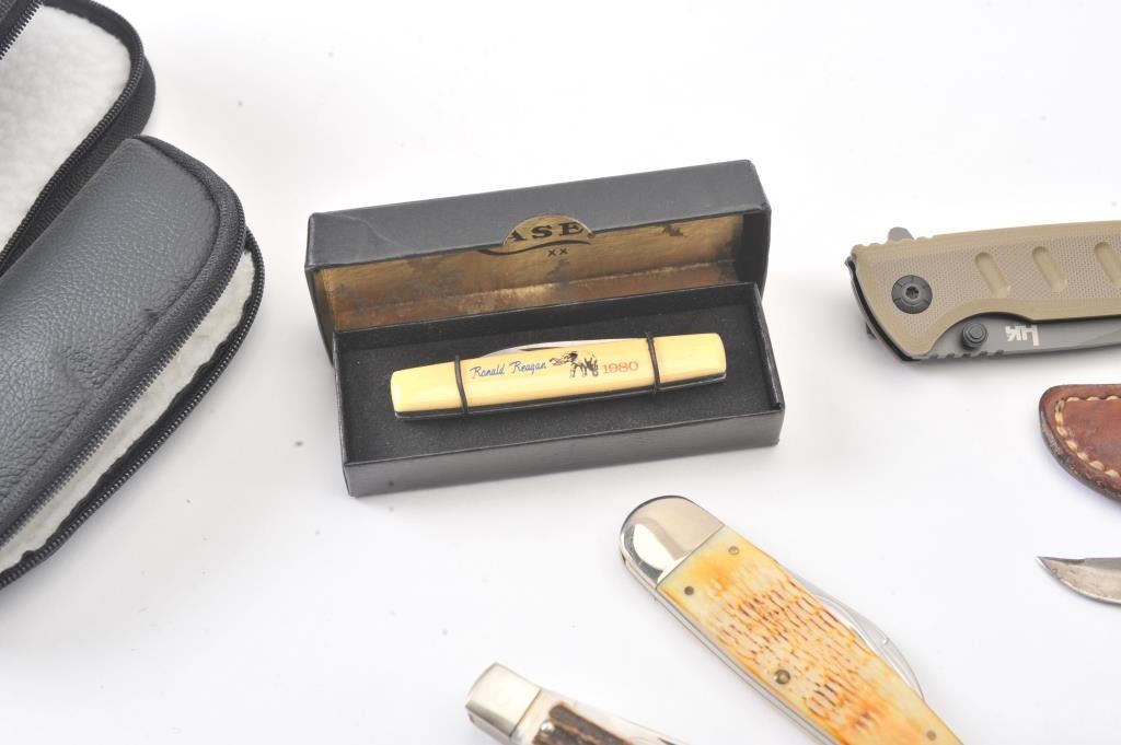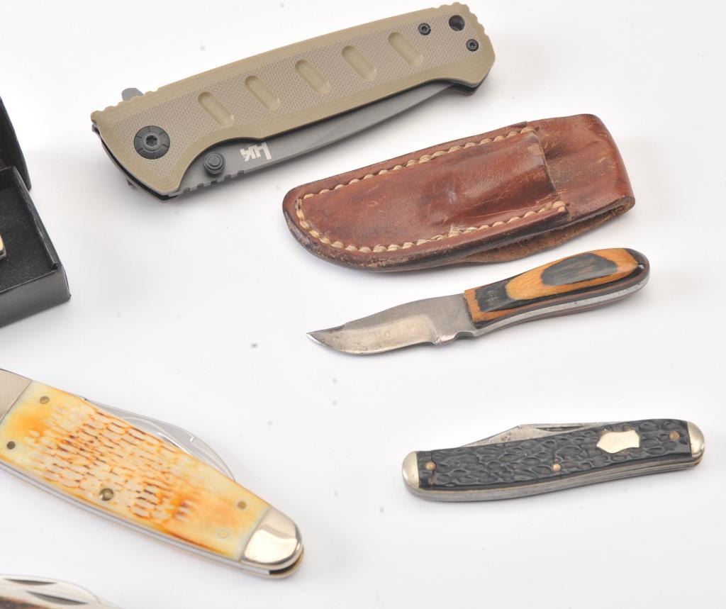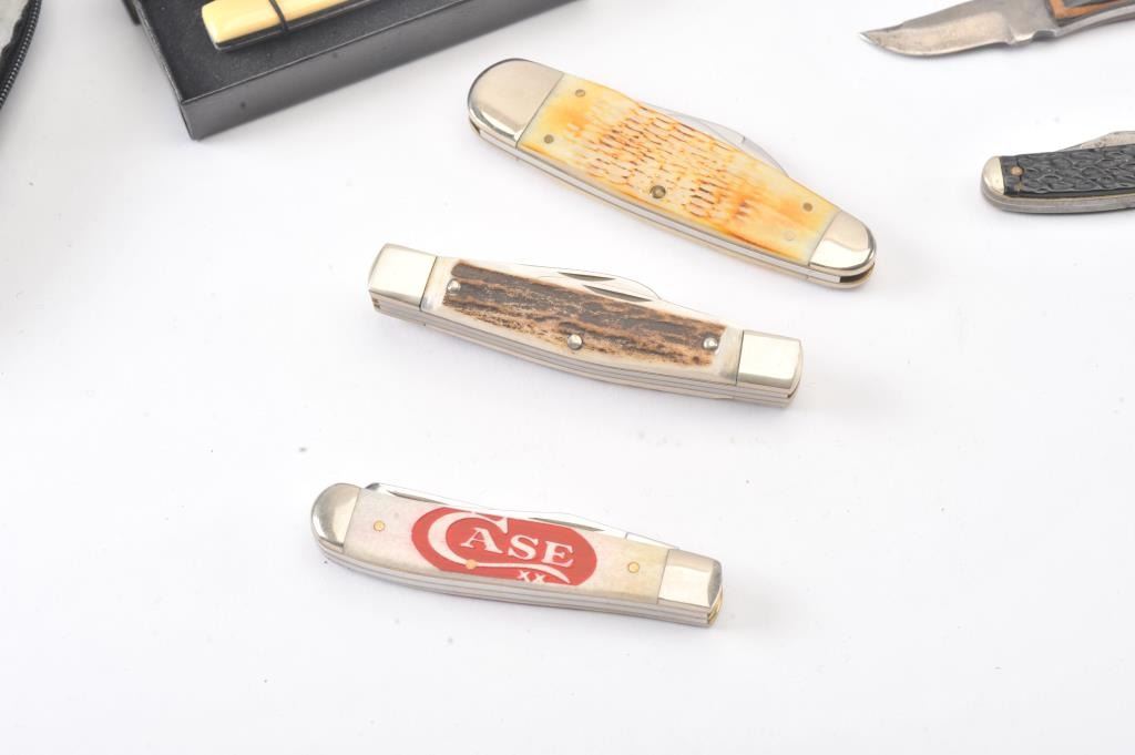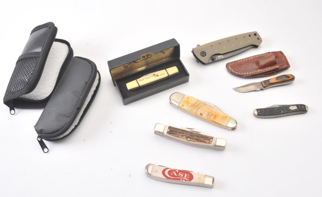 Lot of 7 misc. folder knives, two in soft cases, one in a box; makers include H&K, Case and Stockman; five in like-new condition. Est.: $75-$125.