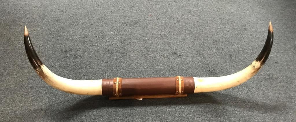 Wood plaque mounted pair of steer horns; approximately 4-1/2 feet wide. Est.: $125-$175.
