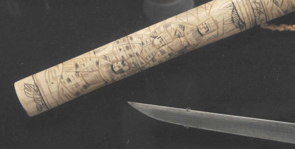 Lot 789 20BP-3 SCRIMSHAWED KNIFE & SHEATH
