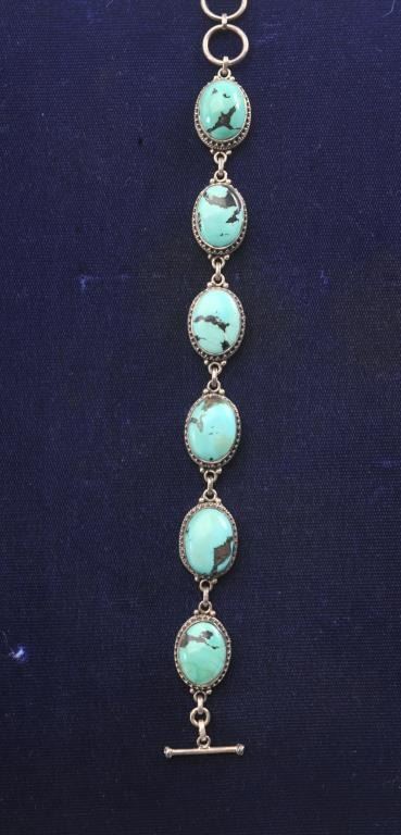 One fine matched Arizona turquoise bracelet made in sterling silver with toggle type clasp Est:$175-350