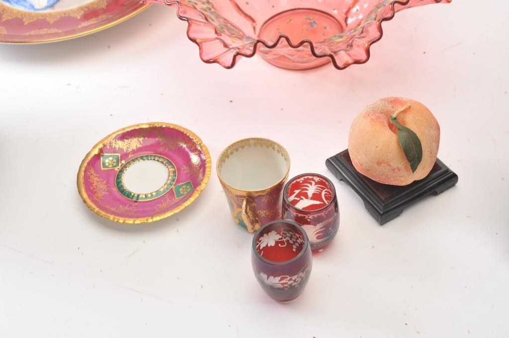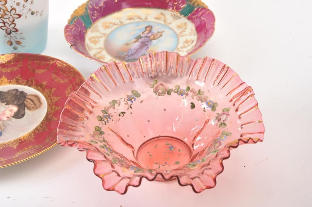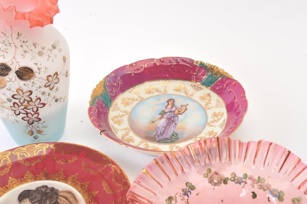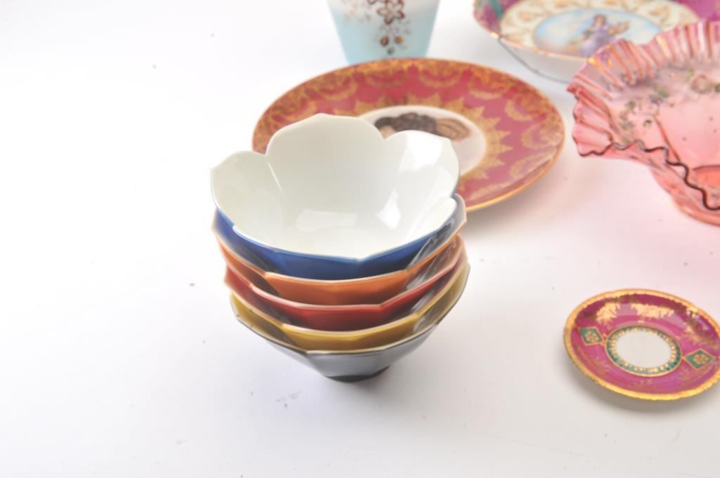 Antique lot of porcelain bowls, plates, photo, etc. Est:$150-300