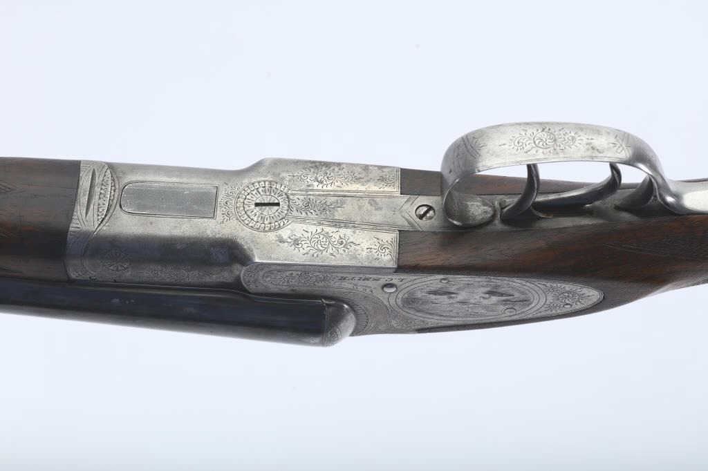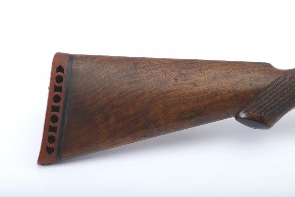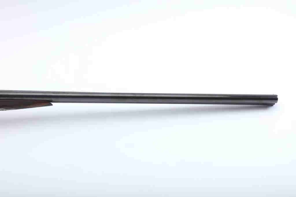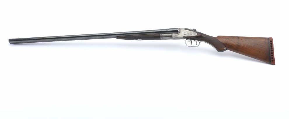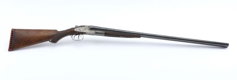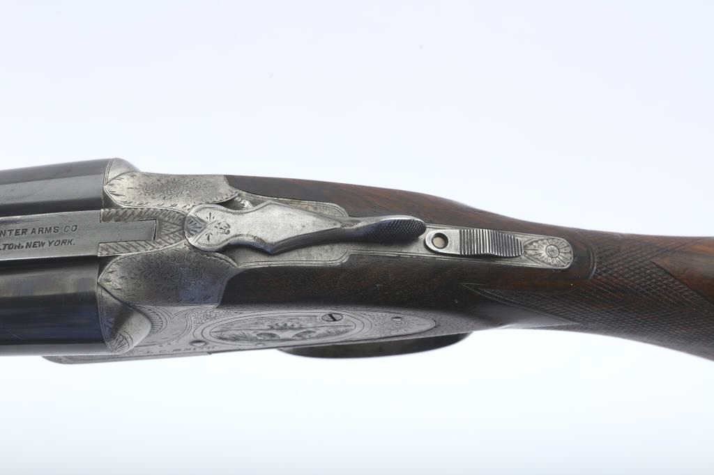 LC Smith Specialty grade SxS shotgun, #208019, 20 Ga., 30" solid rib barrels marked Hunter Arms Co, Fulton New York with fine file on the rib,double triggers, and auto ejectors. The receiver has scroll engravingwith a game scene of two quail on the left lock plate, and a waterfowl scene on the right. The deluxe checkered walnut stock with rubber recoil pad is in very good condition, measuring 13 3/4" to the end of the wood, 14 3/4" to the end of the pad. Barrels have been refinished, two screws to tighten the rib. Choked Cyl and Cyl. Bores are good, action is good. (C&R) Est. $1000-2000