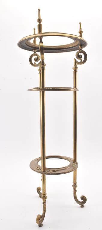 Brass decorative stand shelf with three levels; ornate design; approximately 36” in height. Est.: $75-$125.