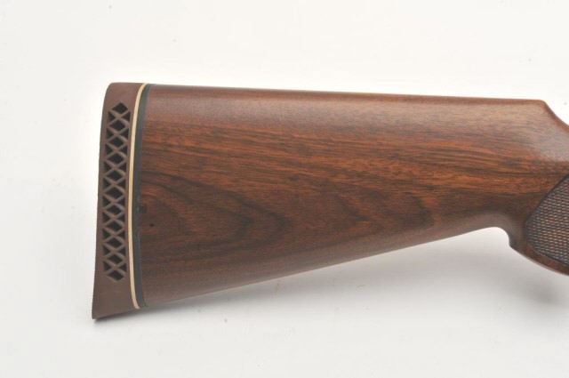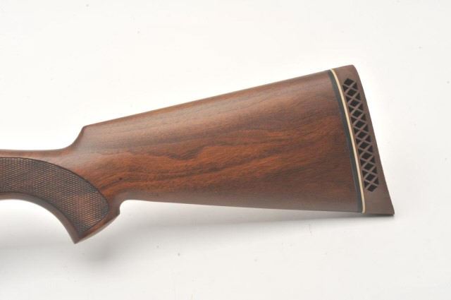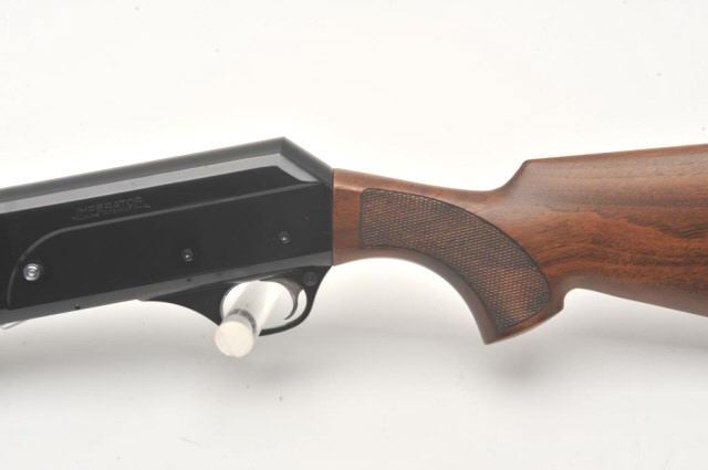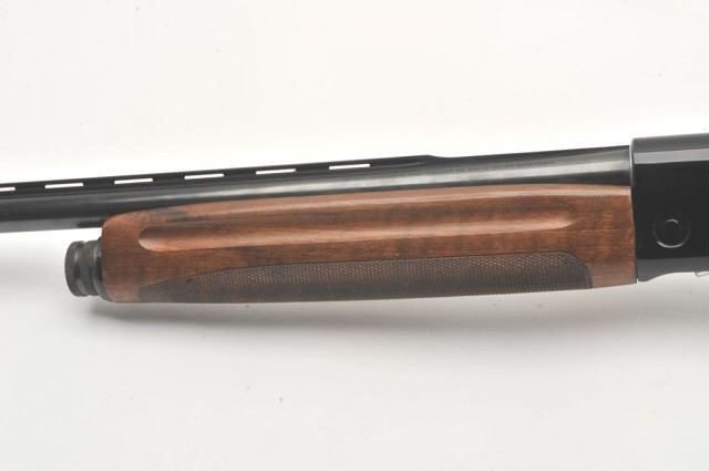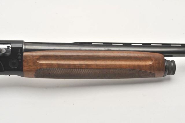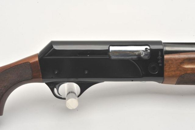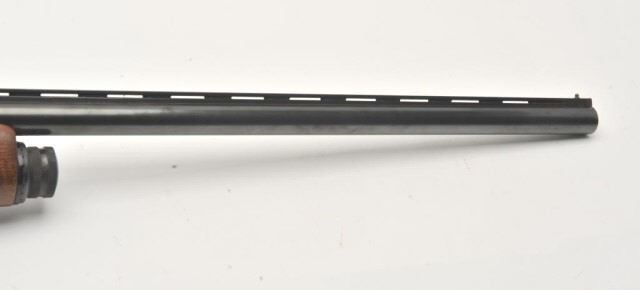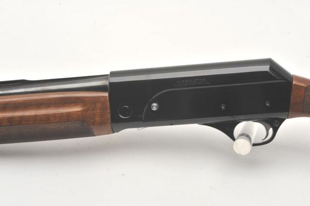Italguns International Imperator semi-automatic shotgun, 12 gauge, Serial #D2638. The shotgun is in very good overall condition with a 28” barrel with a full-length ventilated rib and brass beadfront sight. The metal surfaces retain the majority of their blue finish with a small area of light surface rust at the muzzle. The checkered wood stocks are in very good condition with small mars and sharpcheckering. The butt stock ends with a Pachmayr marked ventilated rubber pad providing a 14 ½” LOP. The bore is good, the action is crisp and markings are sharp. Est.: $250-$500. (Modern).
