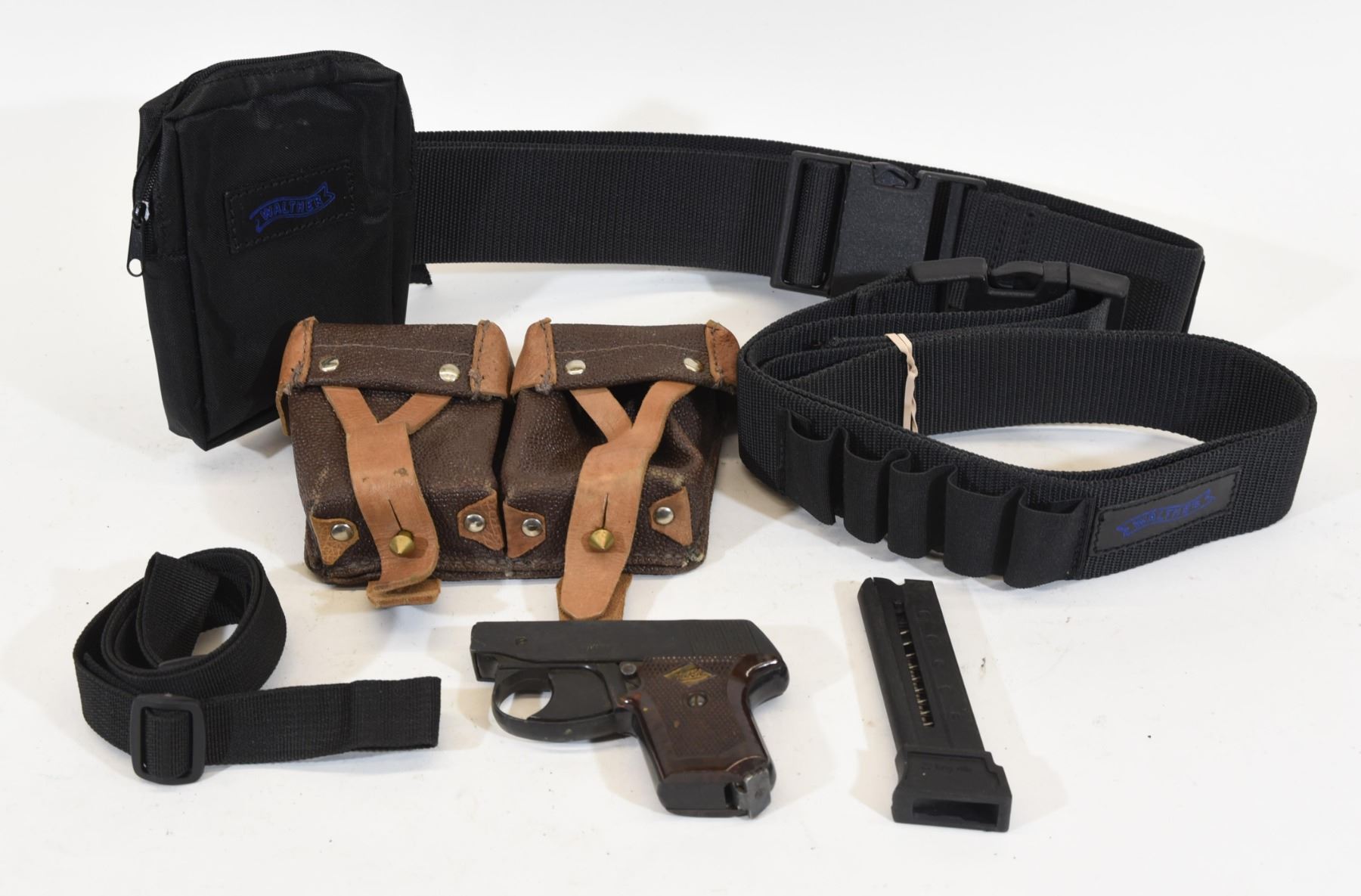 Walther nylon belt, SKS pouch, Perfecta pistol, unknown 22LR plastic mag.
