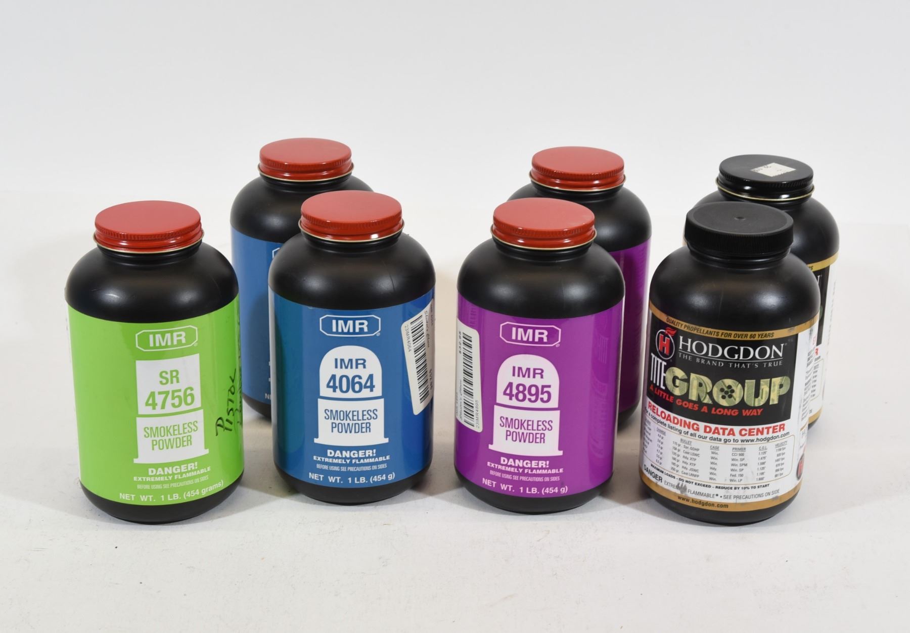 Two full bottles Hodgdon Tite Group, one full bottle IMR4064, full bottle IMR SR4756, 1 1/4 bottles IMR 4895.