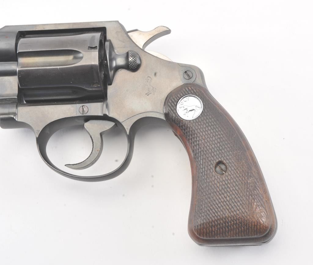 Colt Detective Special in .38 Special with a 2” revolver, S/N 465919 and made 1938. The butt is roll die stamped OX30 and U.S. Capitol Police on the backstrap. 80%-90% finish remains. Shows half matt polish likemilitary probably for this factory order. The grips at worn at the edges. The action is tight and the bore is bright. The Capitol police guard monuments and government building and also special details guard thecongress and high government “swamp People”. (C&R/No PPT) Est.: $600-$1200