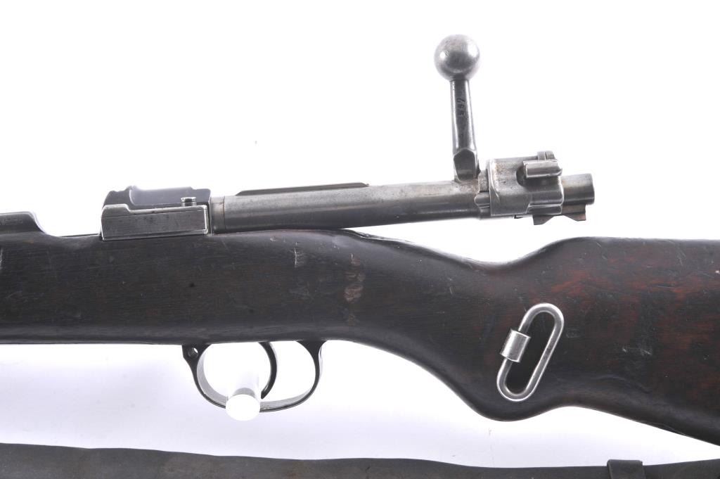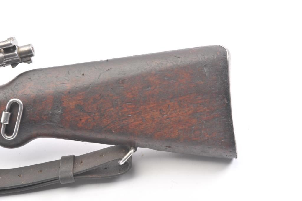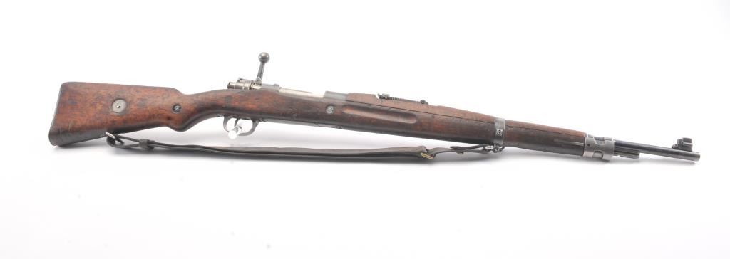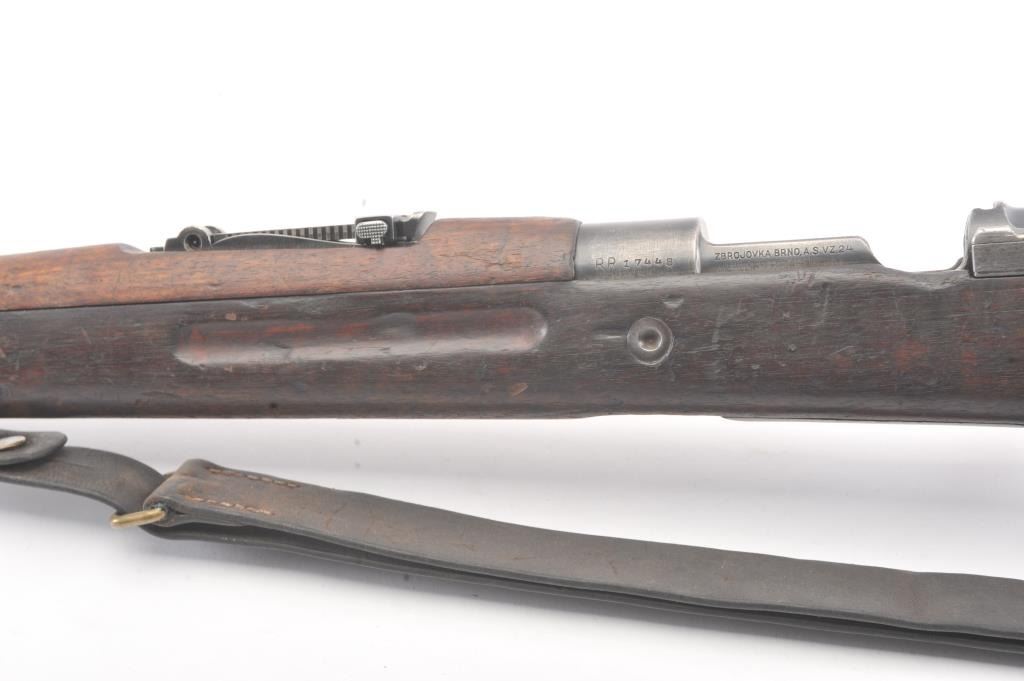 Czech VZ 24 Mauser Action Military issue rifle in 8mm, S/N RR17448 with crest ground off. The bolt is mismatched. About good overall with stock showing mars, dings and scratches. The action is good and the boreshows strong rifling and some erosion and minor pitting from corrosive ammo. (C&R) Est.: $175-$350