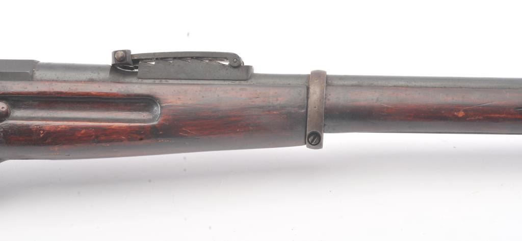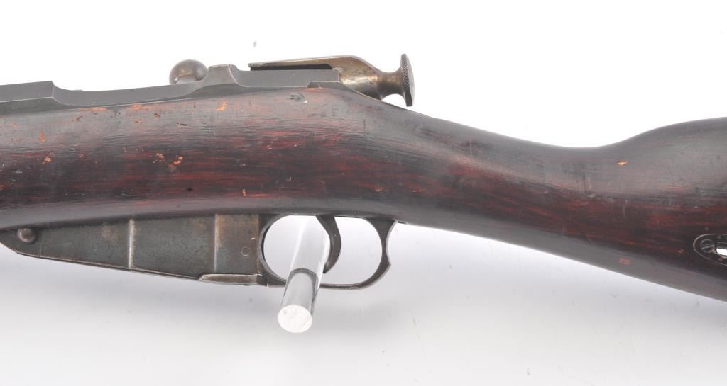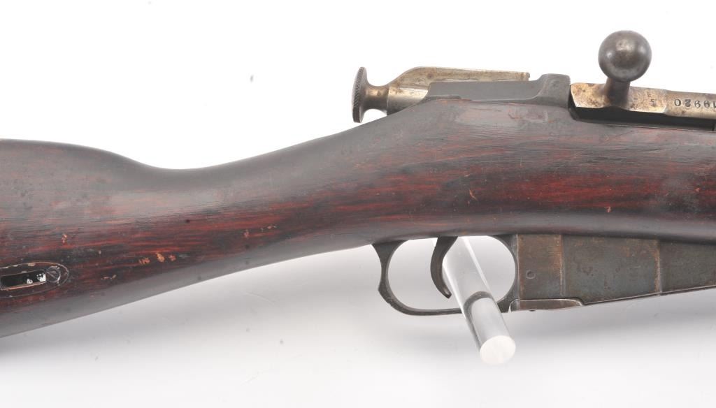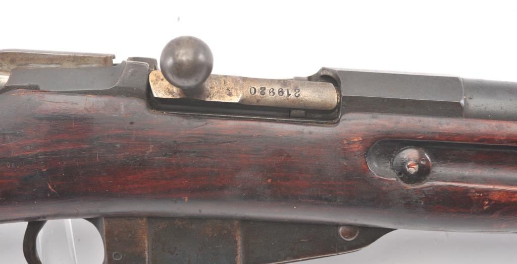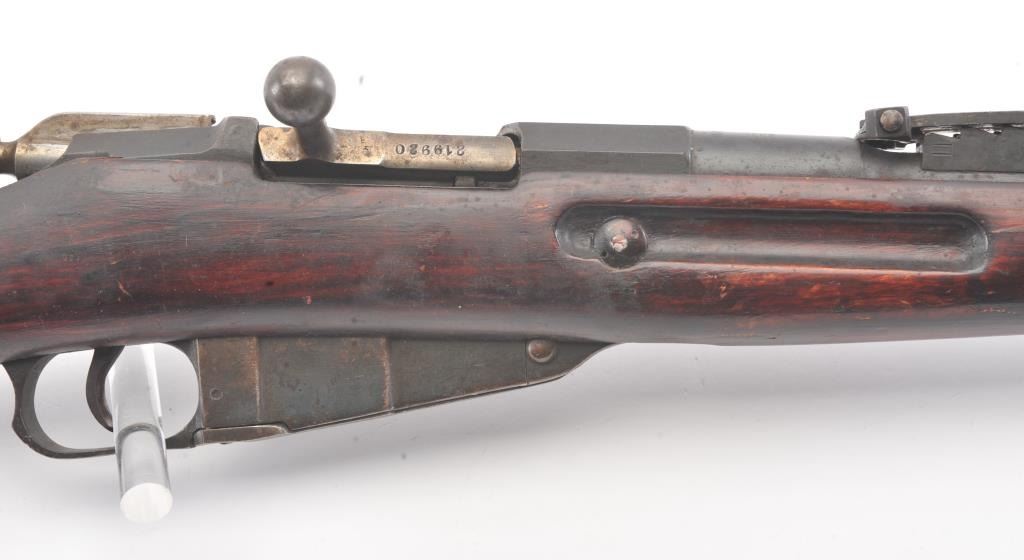 Mosin Nagant made for Imperial Russian contract by Westinghouse in 7.62 z 54R and dated 1915 with czarist eagle mark on the breech, S/N 983700 on the breech and S/N 219920 on the bolt. Good to very good overall condition with 75%-85% blue going to patina. The stock is also good to very good with normal dings, mars and scratches. The action is fair to good and the rifling shows erosion from corrosive ammo. (C&R) Est.: $350-$700