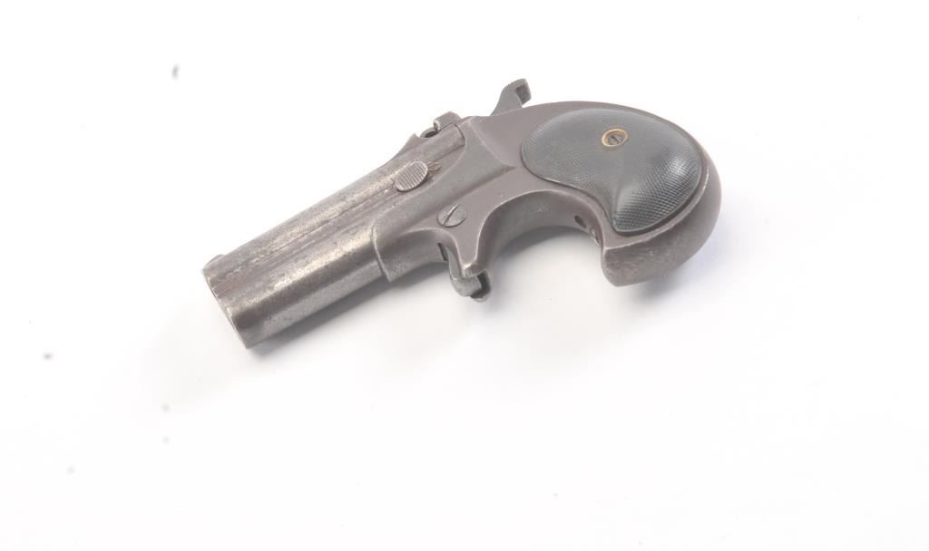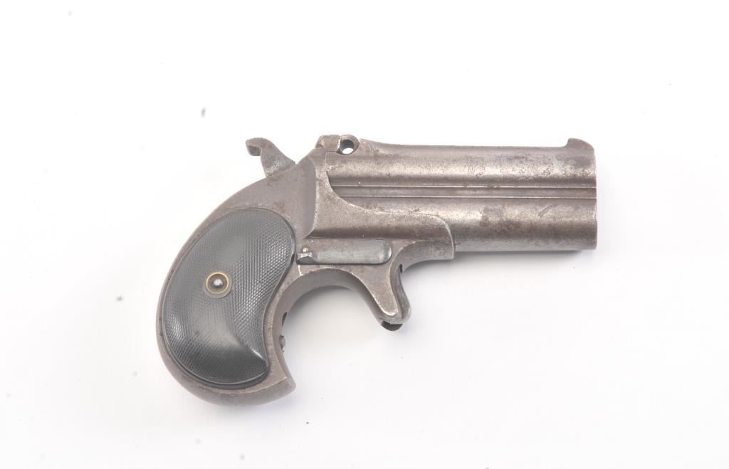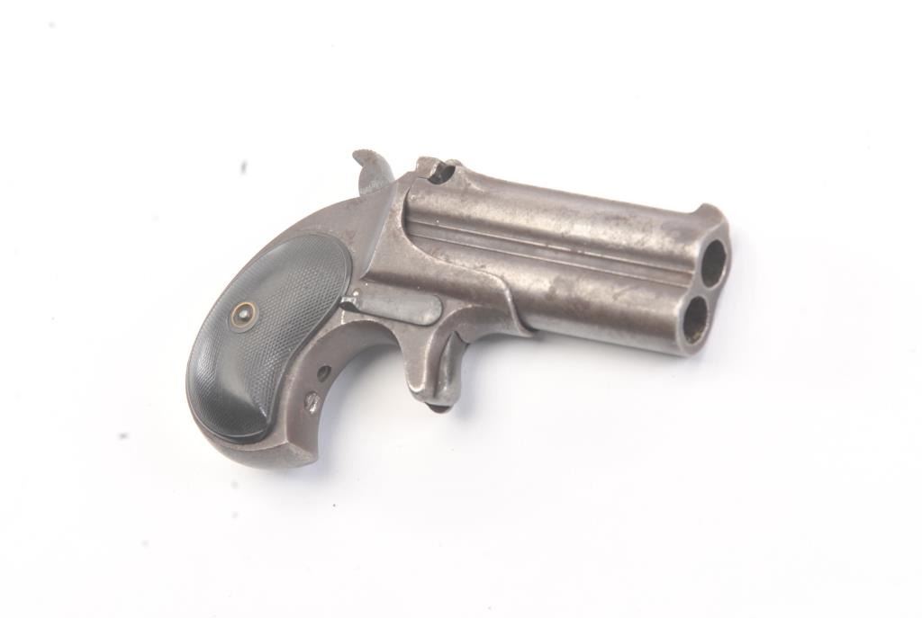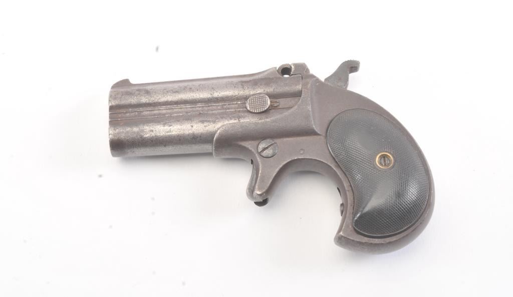 Remington Elliot’s Patent O/U .41 caliber rimfire derringer with 1 line address, S/N 4202. Badly broken hinges (Half missing). Brown patina with minor pitting. Restorable. (Antique) Est.: $150-$300