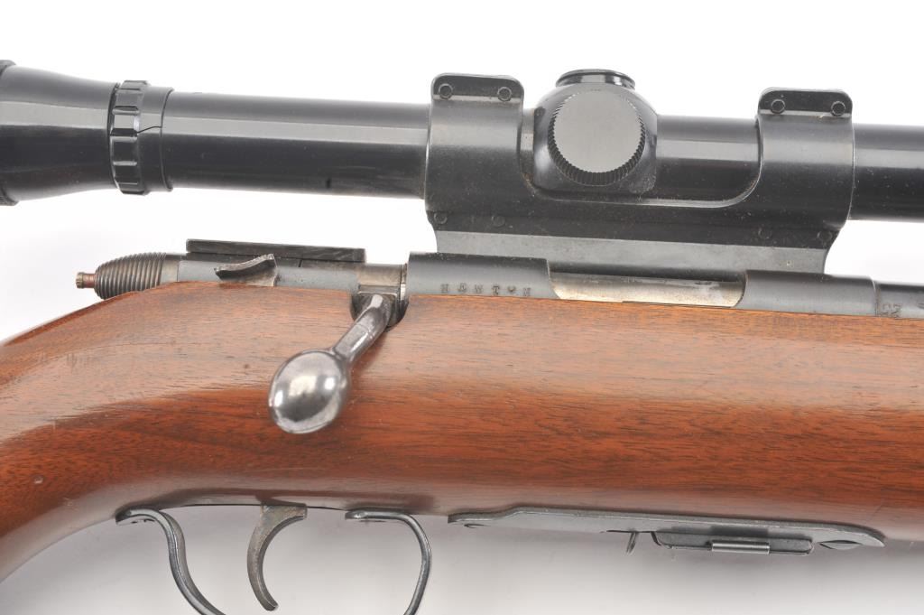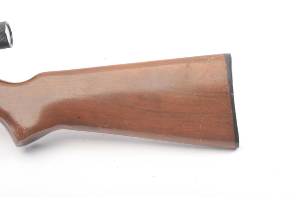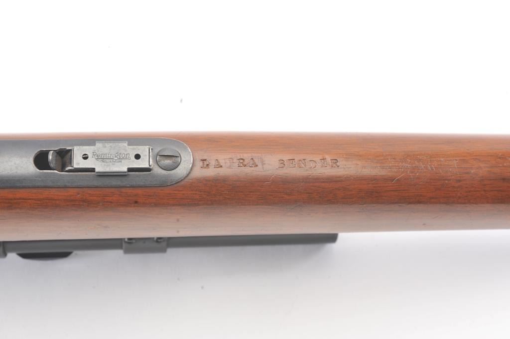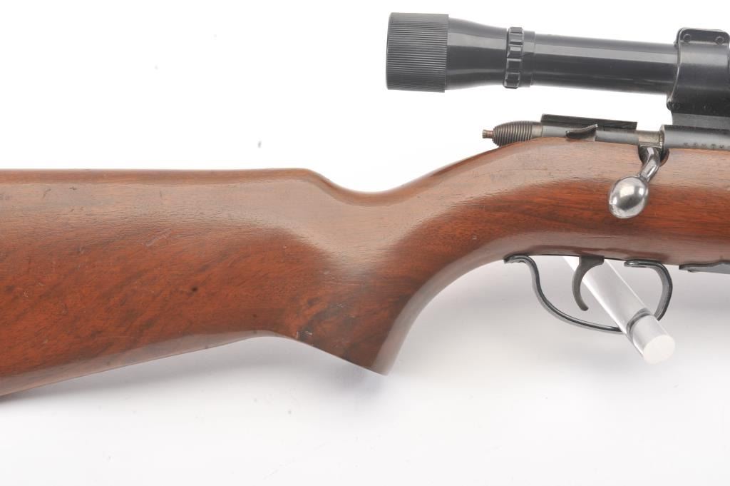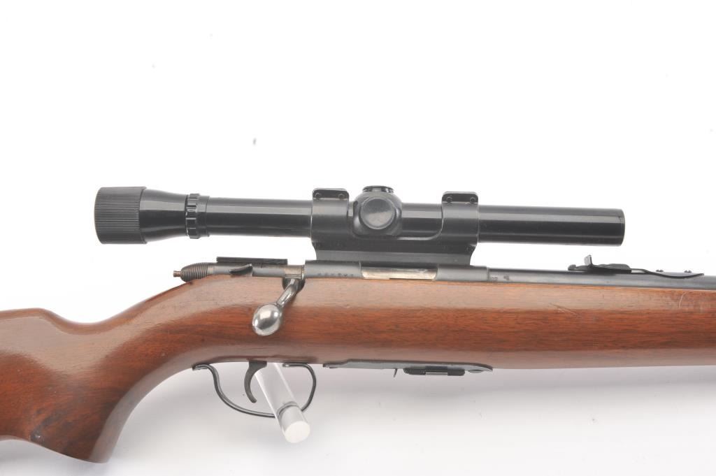 Remington Scoremaster 511 Semi-Auto rifle in .22 S, L, L.R. with Weaver scope on N3 mount. Very good plus with 85%-95% blue with minor scratches at the losses mostly near the muzzle. The stock is also very good withsmall scratches, dings, and mars. Good mechanically with bright bore. (C&R) Est.: $150-$300