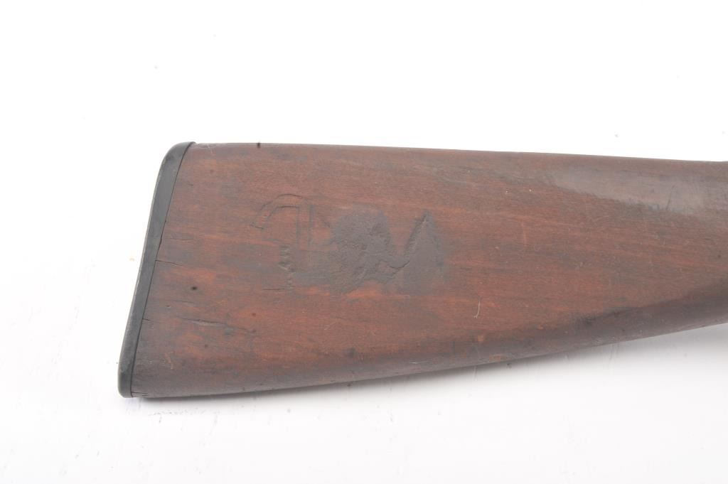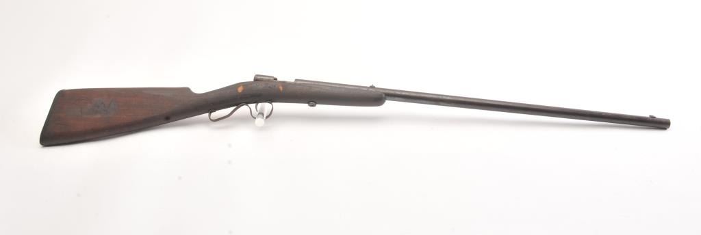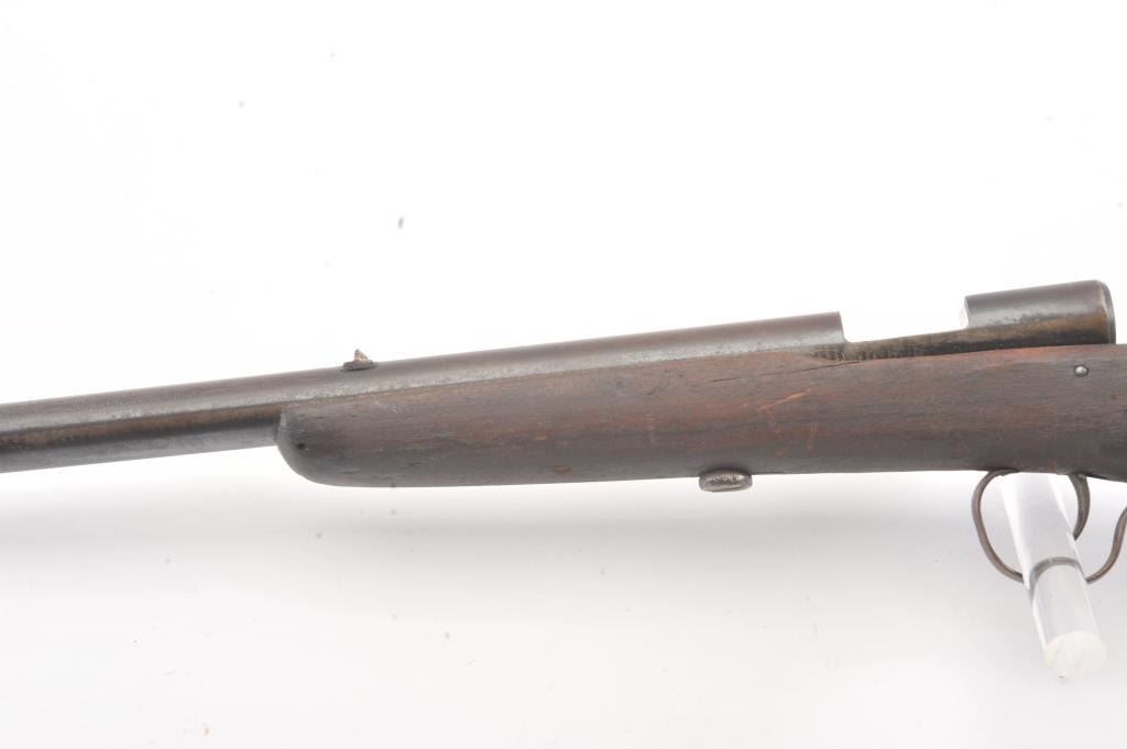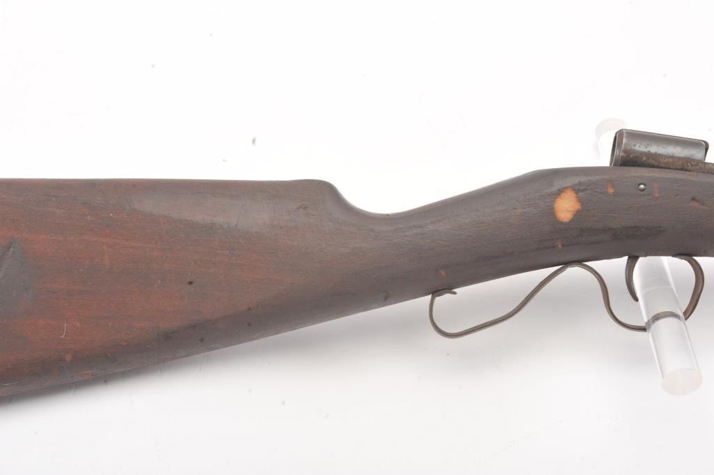 Winchester Model 60A Bolt Action Single Shot Rifle in .22 S, L, L.R. with a 23” barrel and missing bolt. Fair to good overall. Butt plate intact. The bore is good. A sound cadaver for the “Dr. Frankenstein” ofgunsmiths. (C&R) Est.: $35-$70