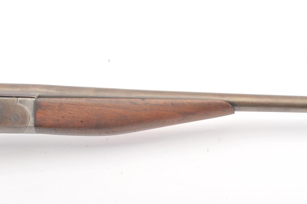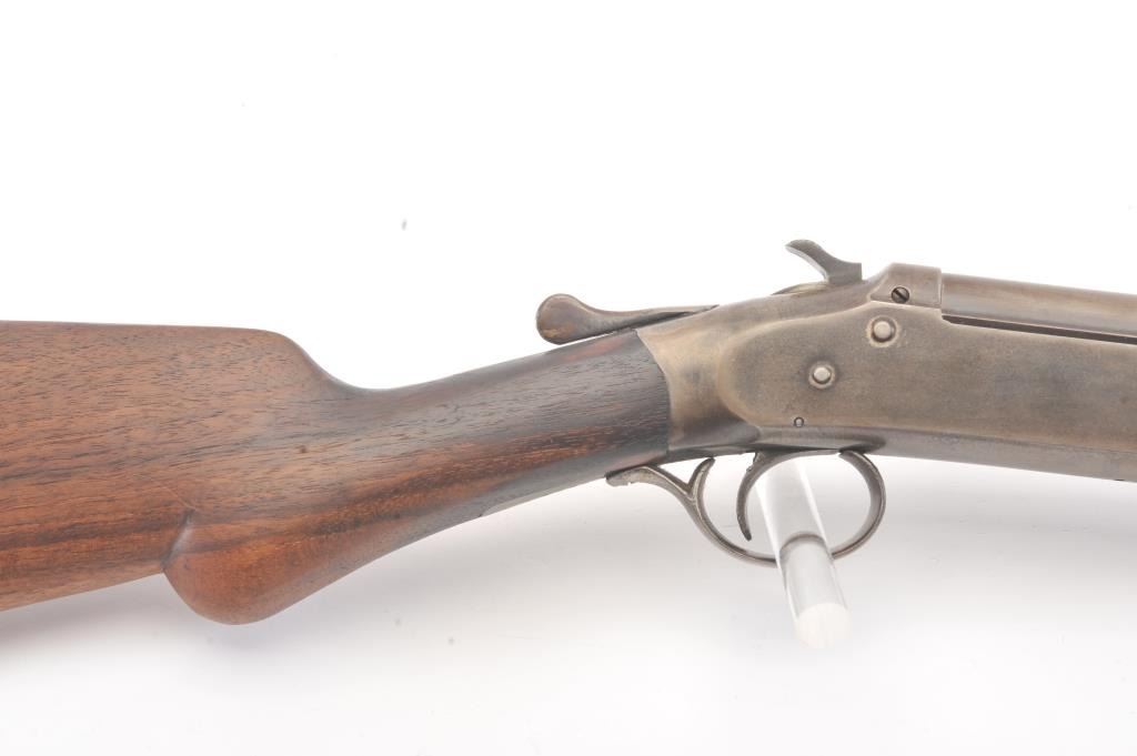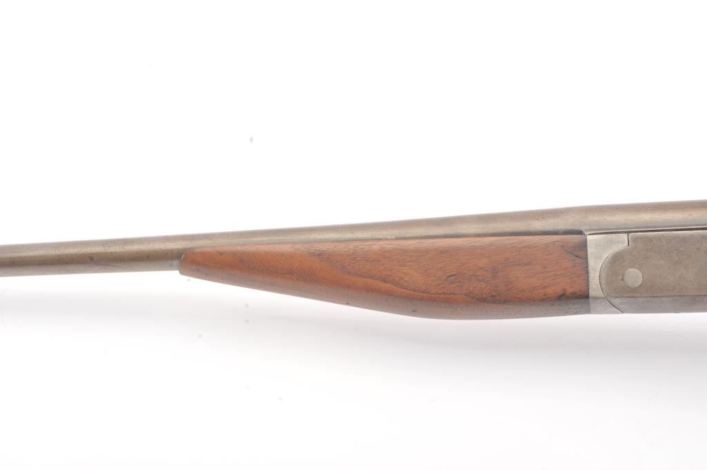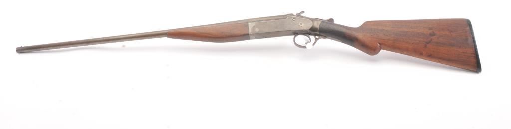 Iver Johnson “Champion” model Single Shot exposed hammer shotgun in 410 GA with a 26” barrel choked modified, S/N 88341A. Gray patina finish with minor erosion and good markings. The wood is cleaned to good withsteel wool. Original plate. Good action and the bore is slightly rough showing corrosion. (C&R) Est.: $100-$200