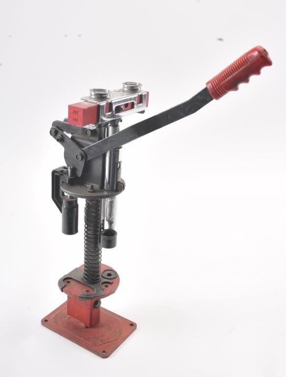 MEC 600 JR Mark V 16 Ga. shotshell reloading press in good condition, with charge bar, missing the powder and shot bottles (about $20 to replace). Est. $75-150