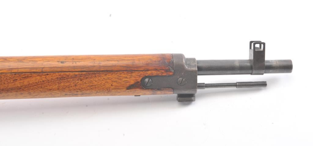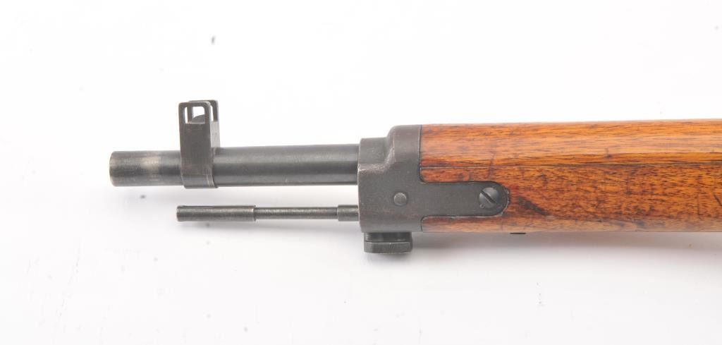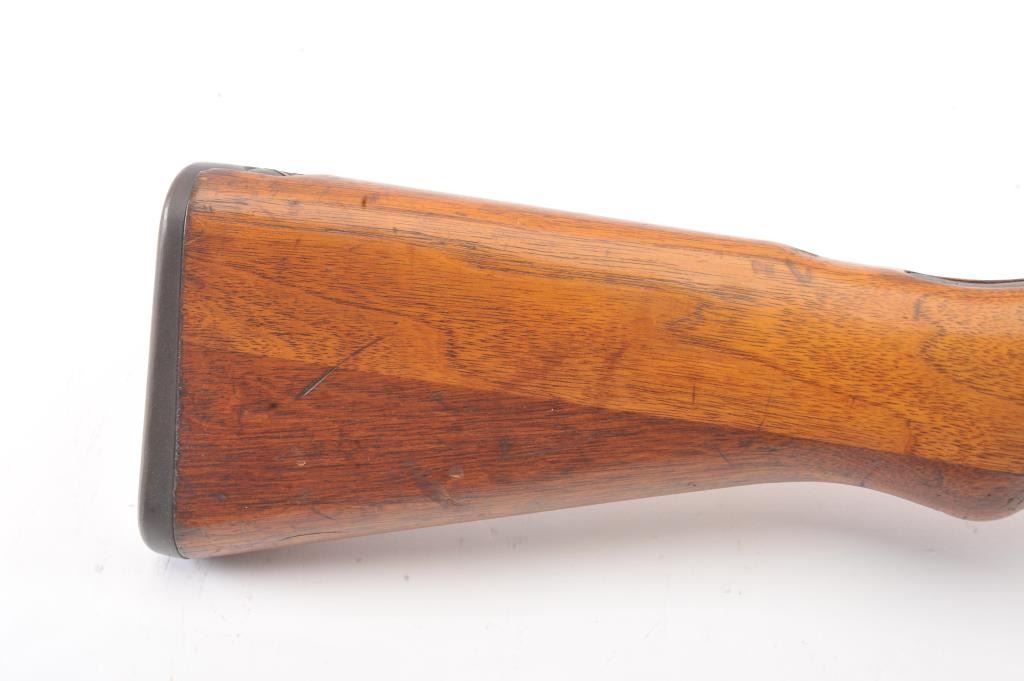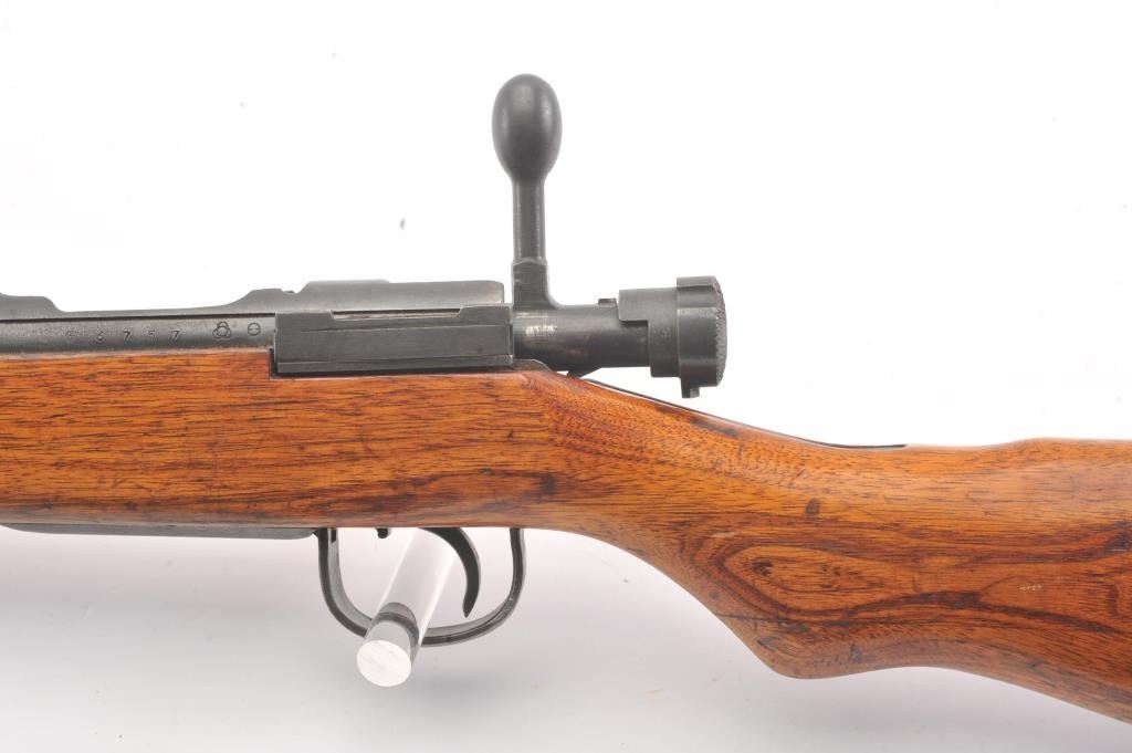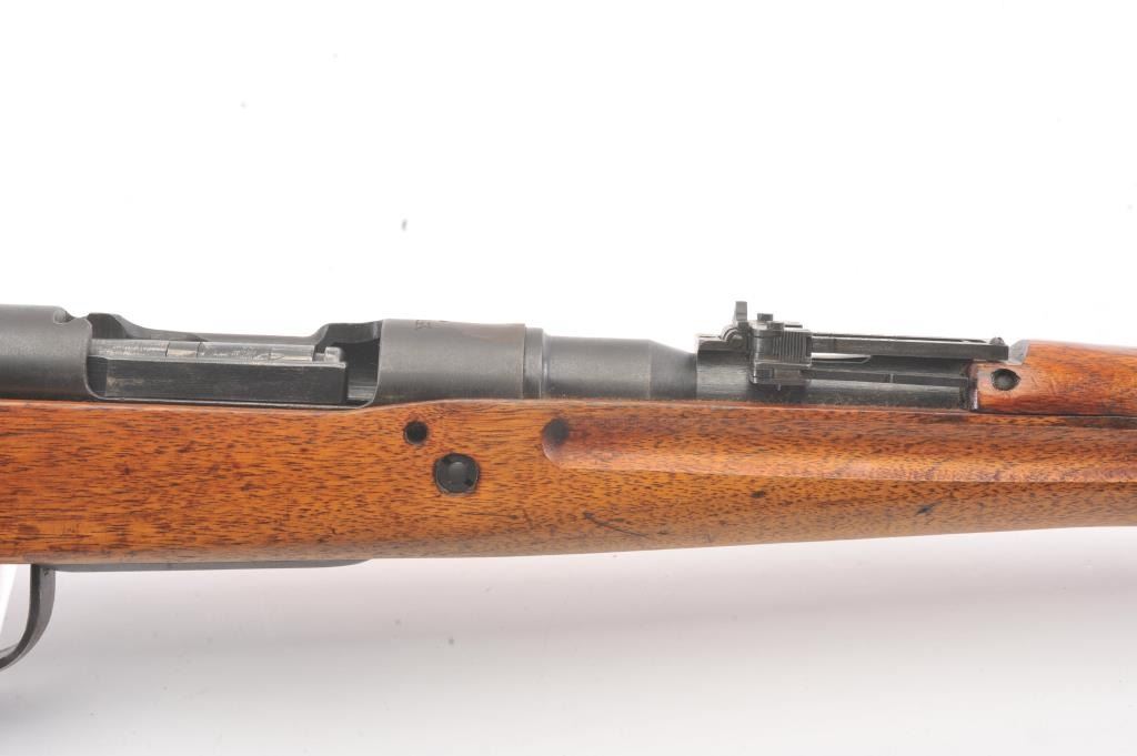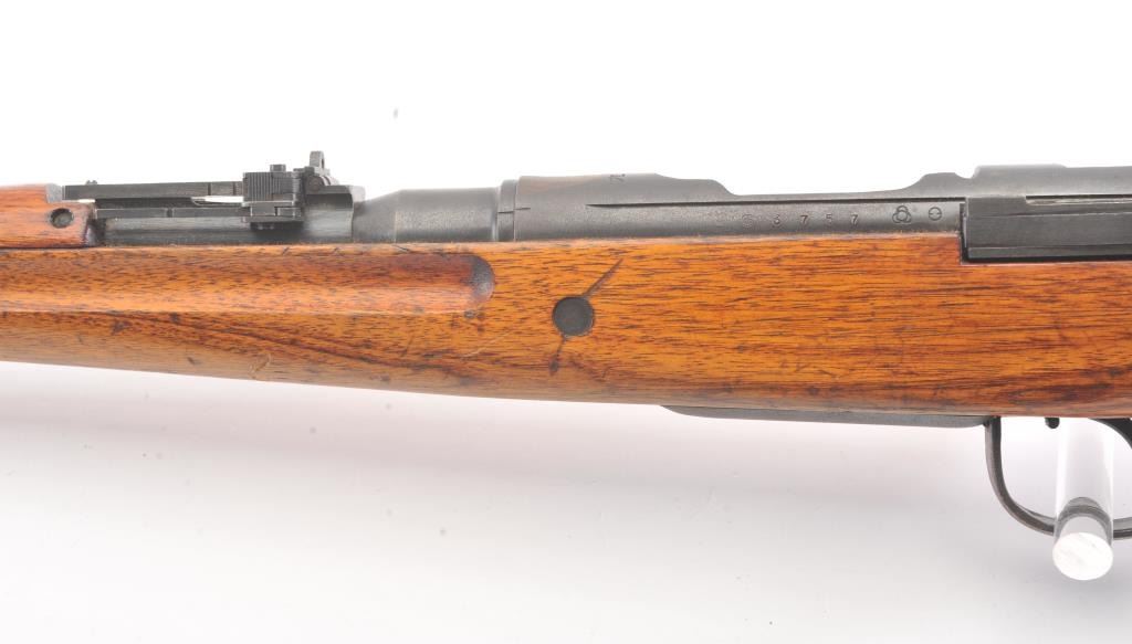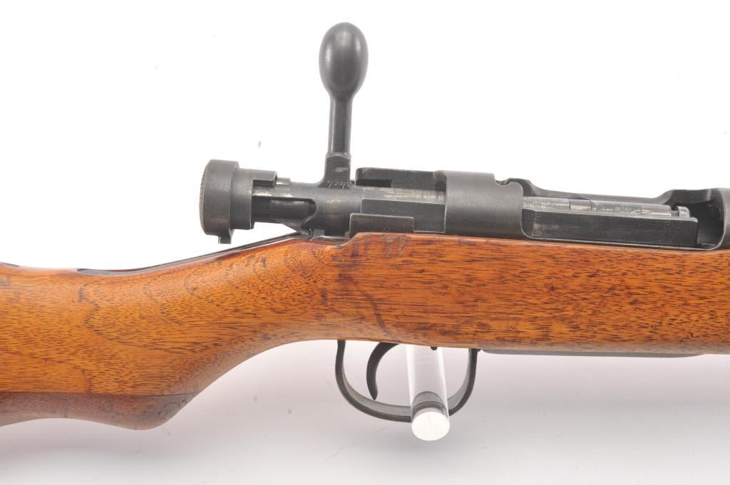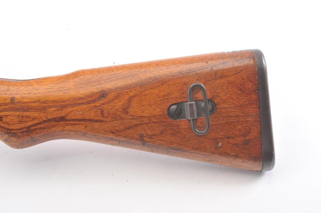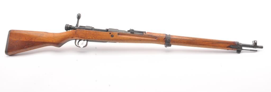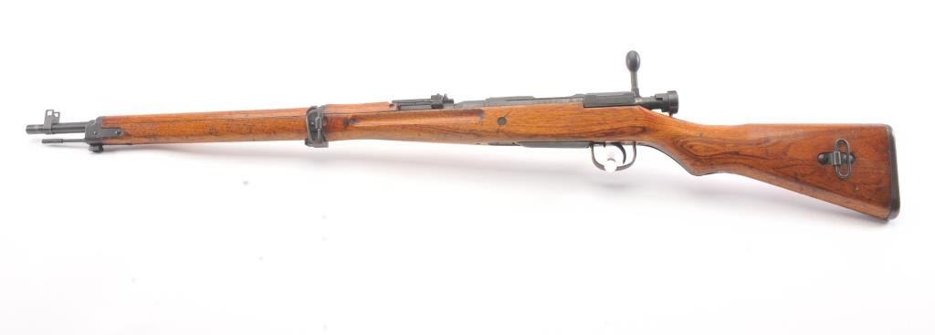 Arisaka model 99, #3757 , 7.7 Japanese cal., 26" barrel, blued finish, smooth walnut stock, with metal butt plate. Rifle is in very good plus to near fine condition, showing 80%+ original finish, the Mum hasbeen ground, and there is light freckling on the metal surfaces. Bore is very good plus, action is crisp, stock is very good plus. Aircraft sights are intact, matching bolt. A very nice Arisaka. (C&R) Est. $200-400