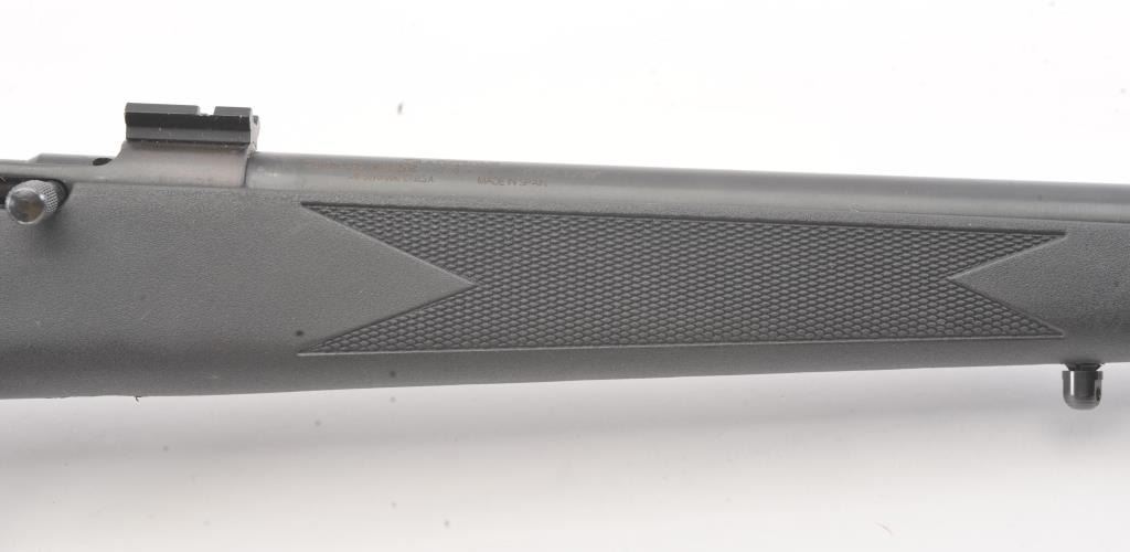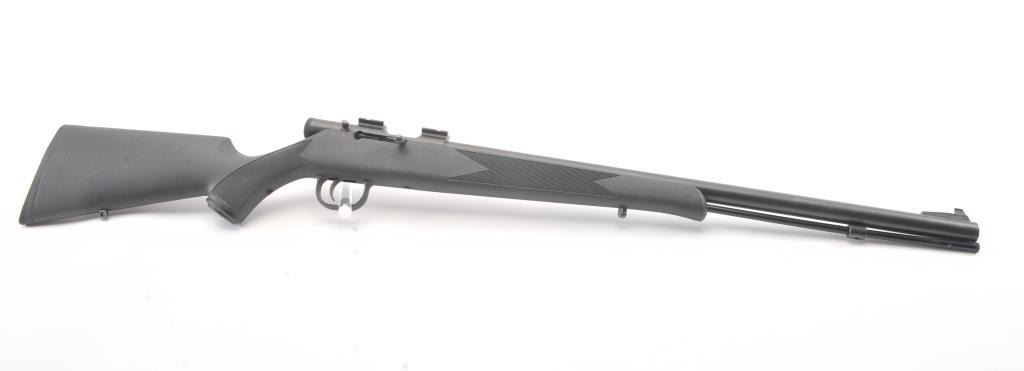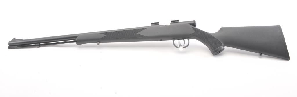 Traditions by Timber Ridge 209 in line .50 cal black powder rifle, #14-13-000480-09, 24" barrel, blued finish with black synthetic stock and rubber recoil pad. Rifle is in very good condition overall, very good bore,good action, with scope mounts. Stock is very good plus. (Modern) Est. $125-250