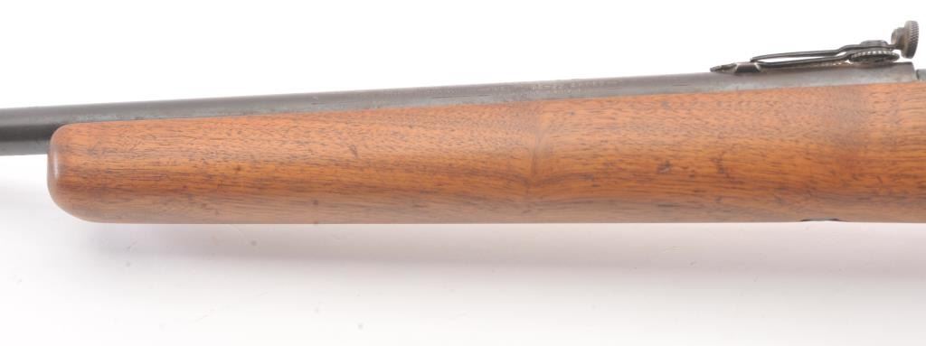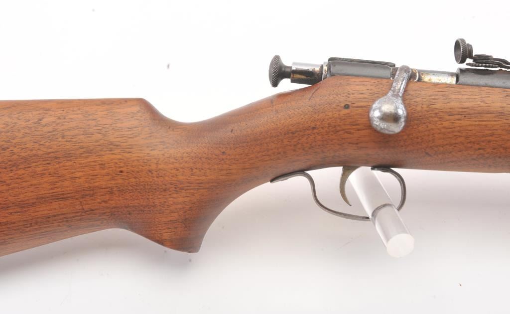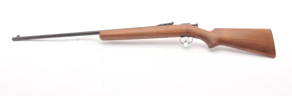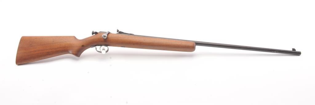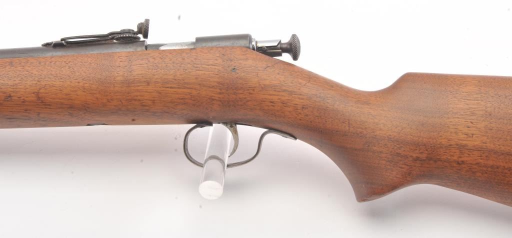 Winchester Model 68, #NSNV, "NEWTON" stamped into the barrel on the right side, .22 S, L, LR cal., 27" barrel, blued finish with smooth walnut stock, rear peep sight, missing butt plate. Rifle is in good to very goodcondition overall, finish is drifting to a brown patina, bore is bright, action is very good, stock is very good, has been lightly sanded and oiled. (C&R) Est. $150-300