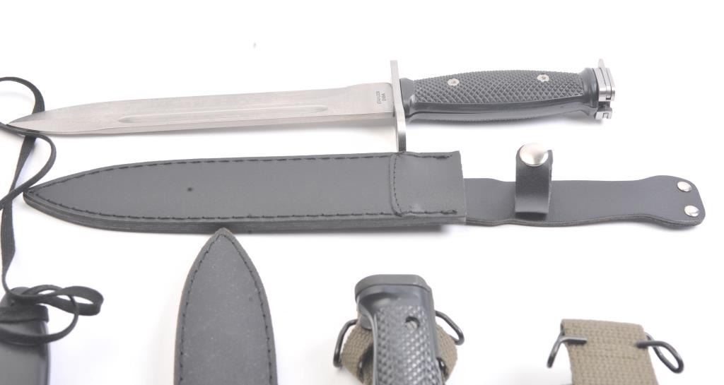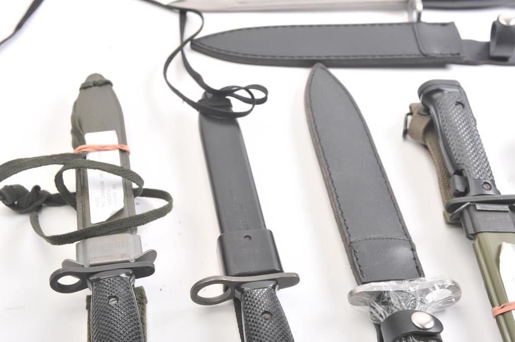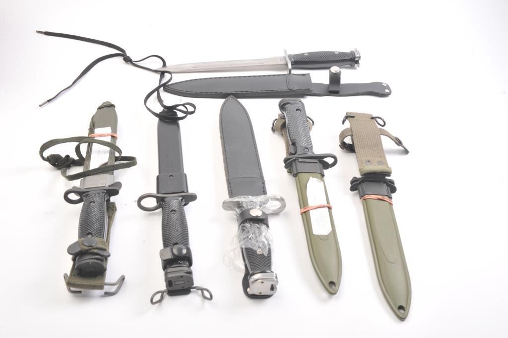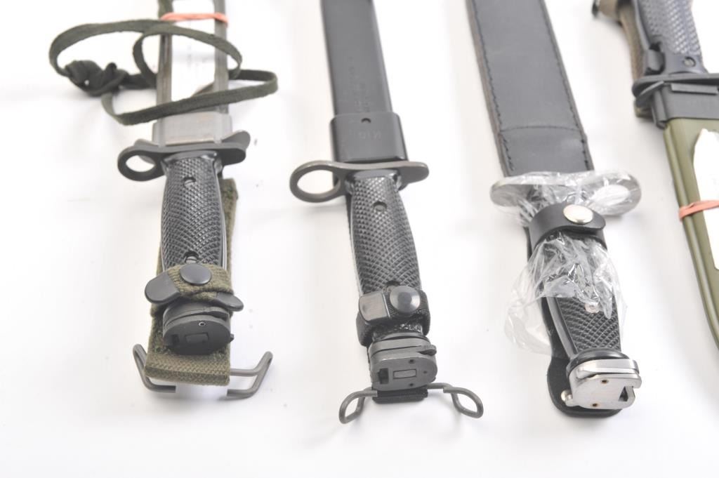 Six bayonets in varied condition for M1 carbines, Garands, M-14, M-16 and M1-A. Est.: $100-$200