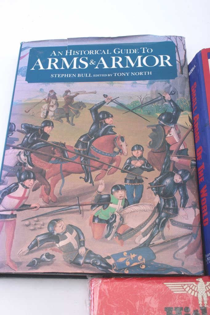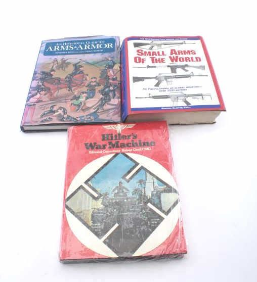 Lot of three military books. The lot includes a hard back copy of, “Hitler’s War Machine” with original dust jacket in very good condition. The 12th edition of Ezell’s Small Arms of the World and An HistoricalGuide to Arms & Armor, both with their original dust jackets in good condition. Est.: $25-50