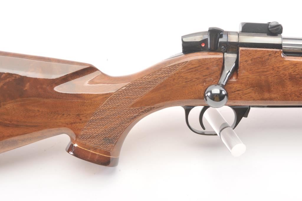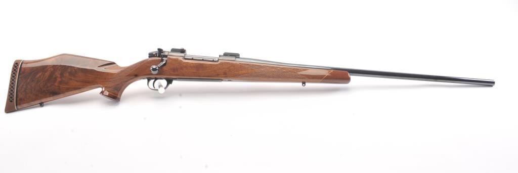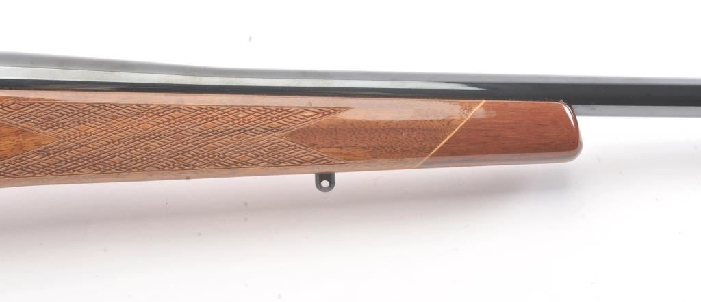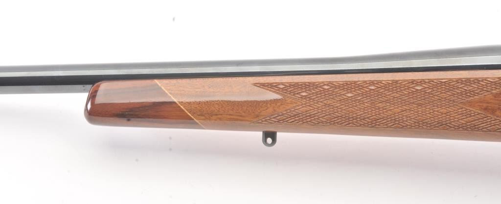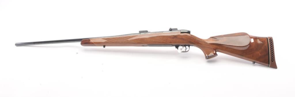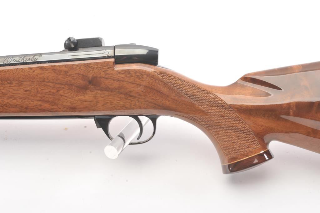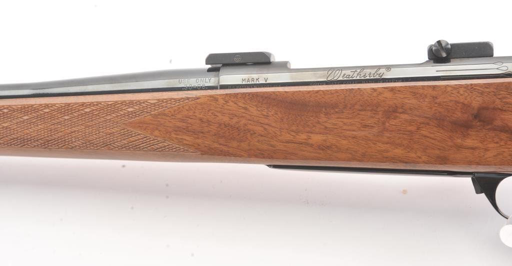 Weatherby MK V Bolt Action Sporting Rifle Made in Japan in .30-06 caliber with Redfield scope mounts, S/N 245347. Fine to excellent used condition with 1993 catalog obtained at purchase. 97%-99% showing minor firing anduse. (Modern) Est.: $400-$800
