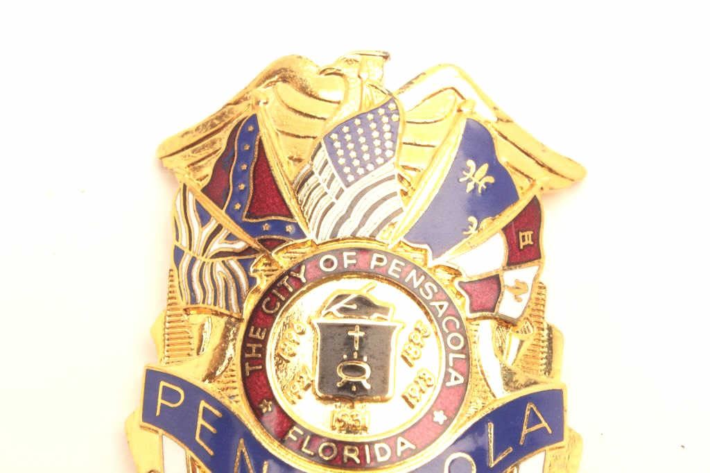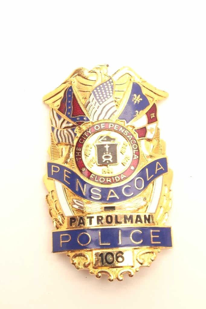 City of Pensacola Florida Police Patrolman pin shield badge with enamel, #106. Est.: $75-150