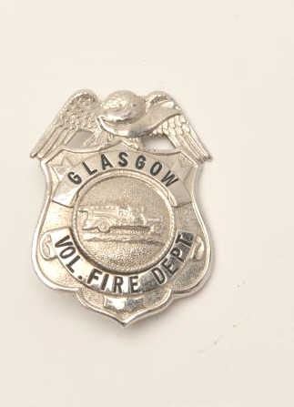 Glasgow Vol. Fire Dept. badge with “Pat. 2066969” on base of pin. Est.: $75-150