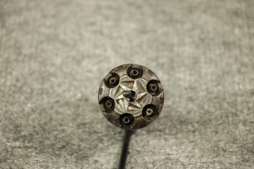 No Lic. Req. 8" barrel. 44 cal. Ser. #103211. Expected patina. No rust. Small chip off the grip. Indexes well.