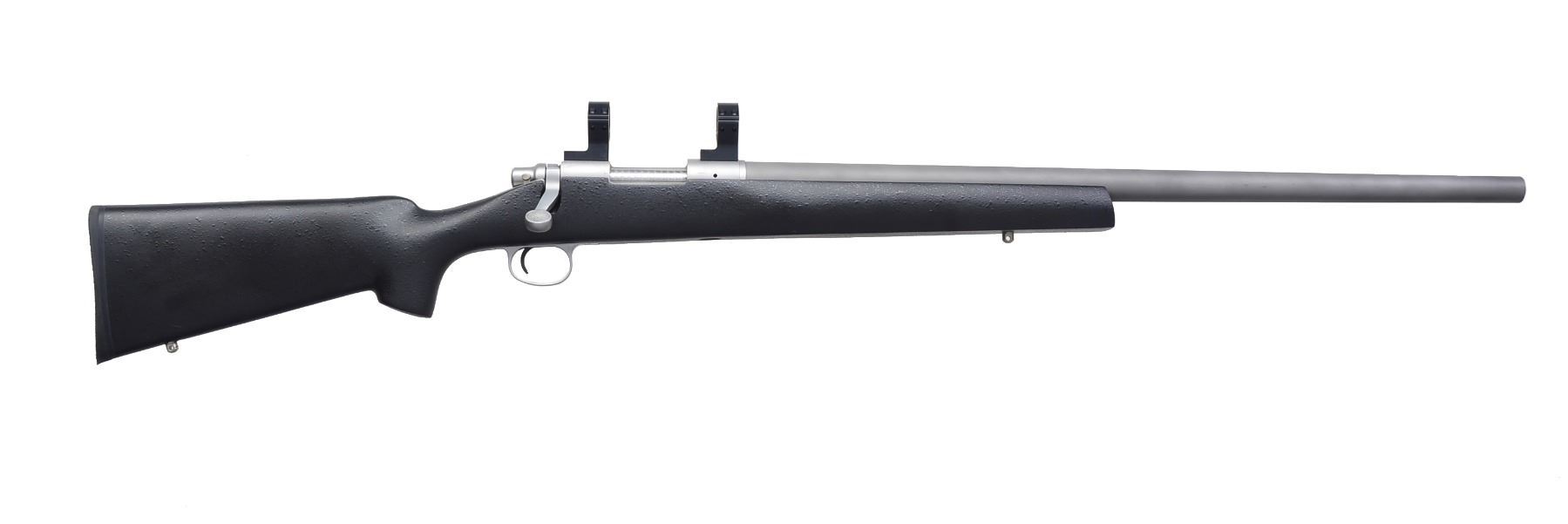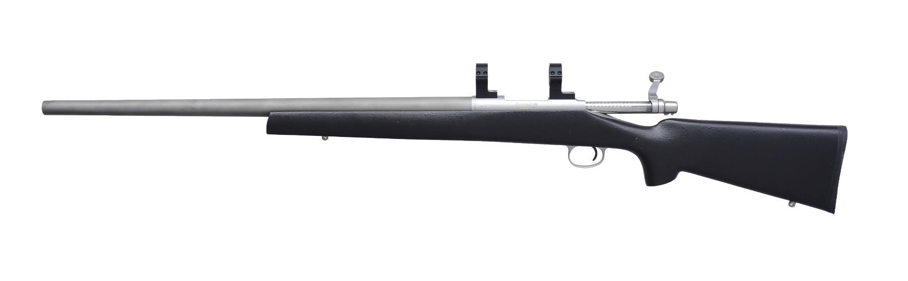 ACTION RIFLE. Cal. 243 Win. S# S6563685. Bbl. 25" Shilen match stainless steel Varmint weight. Stainless steel Remington 700 ADL action w/ Talley scope bases having integral 30mm rings. Glass bedded Brown Precision fiberglass stock w/ black crinkle finish, swivel bases & thin black recoil pad. UNATTACHED ACCESSORIES: foam lined plastic case & original shipping carton. CONDITION: near excellent. Bottom of bbl. near muzzle shows sm. finish scuffs. Stock shows 1 sm. handling mark on left wrist. Bright near excellent bore. (20-607/DS). MODERN. $2,000-2,900.