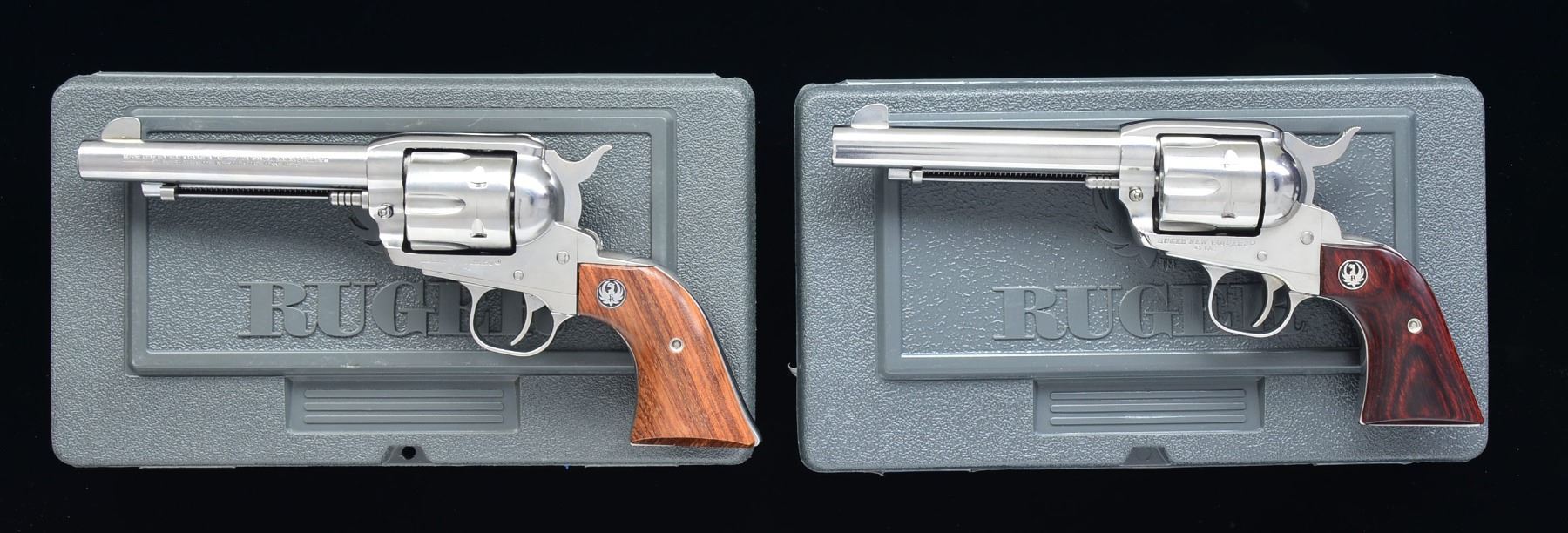 Lot 2287A 2 RUGER STAINLESS 45 COLT VAQUERO REVOLVERS.