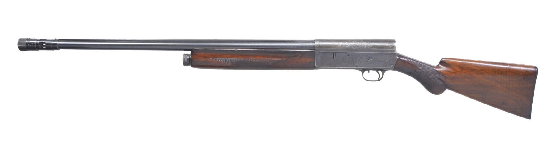 Cal. 12 Ga. S# 152929. Bbl. 27 3/8" over Multy-Choke Dyna-Magic adj. choke forward of multi port recoil chamber having silver bead. Mfg. 1911-1949 w/ fine hand checkering & scroll engraving w/out game scenes on receiver & for 2" forward of receiver on bbl. Cut rather than stamped S# & Full choke designation on bbl. having raised solid rib. Checkered hard rubber buttplate marked "Remington / UMC". CONDITION: good overall appearance w/ scattered peppery oxidation & thinning of finish at high points & from cradling. Numerous light marks throughout stock set also having extra finish. Chip on outer edge of buttplate near toe. Very good bore w/ slight firing residue. (19-5489/NW). CURIO. $1,000-1,500.