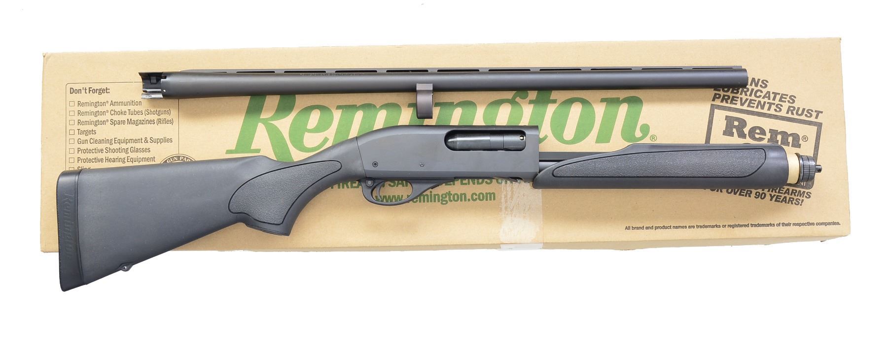 SHOTGUN. Cal. 12 Ga., 3 1/2". S# RS14705Y. Bbl. 26"VR w/ silver colored bead front sight & fitted for Rem chokes; Mod. tube included. Receiver marked"REMIGNTON 870 SUPER MAG". Black synthetic stock set w/ black recoil pad. UNATTACHED ACCESSORIES: shipping box w/ instruction manual, chokes & lock. CONDITION: all aspects including bore near excellent. (20-766/RW). MODERN. $300-400.