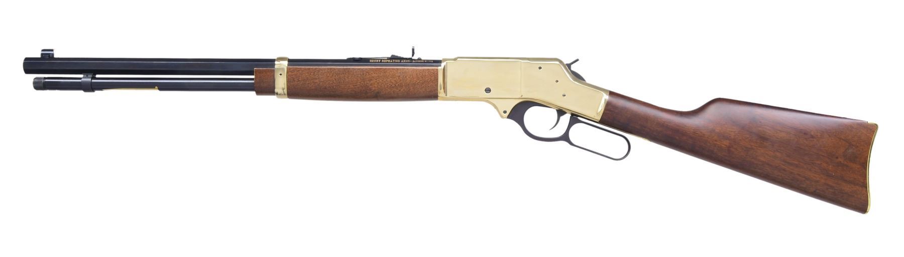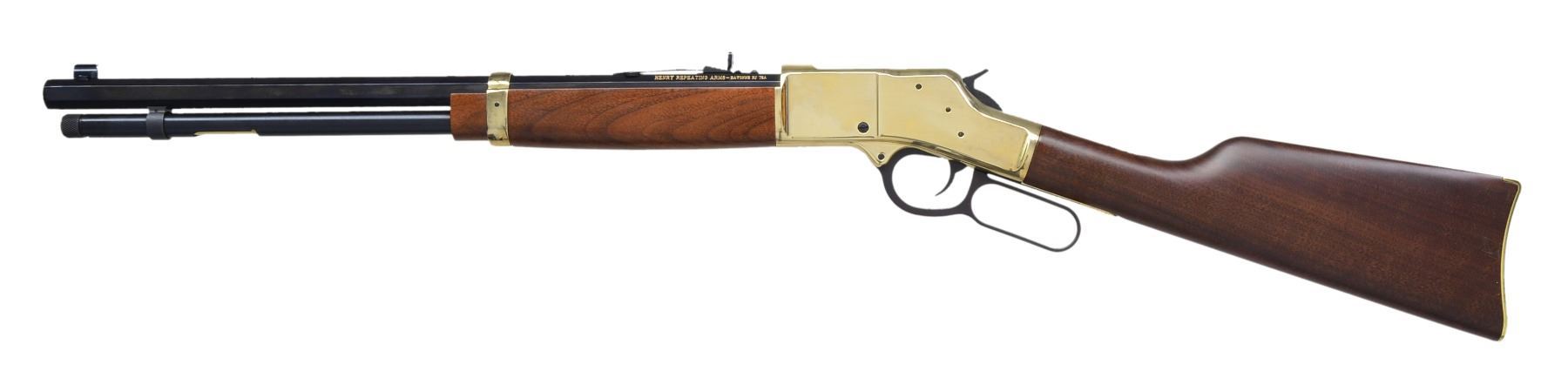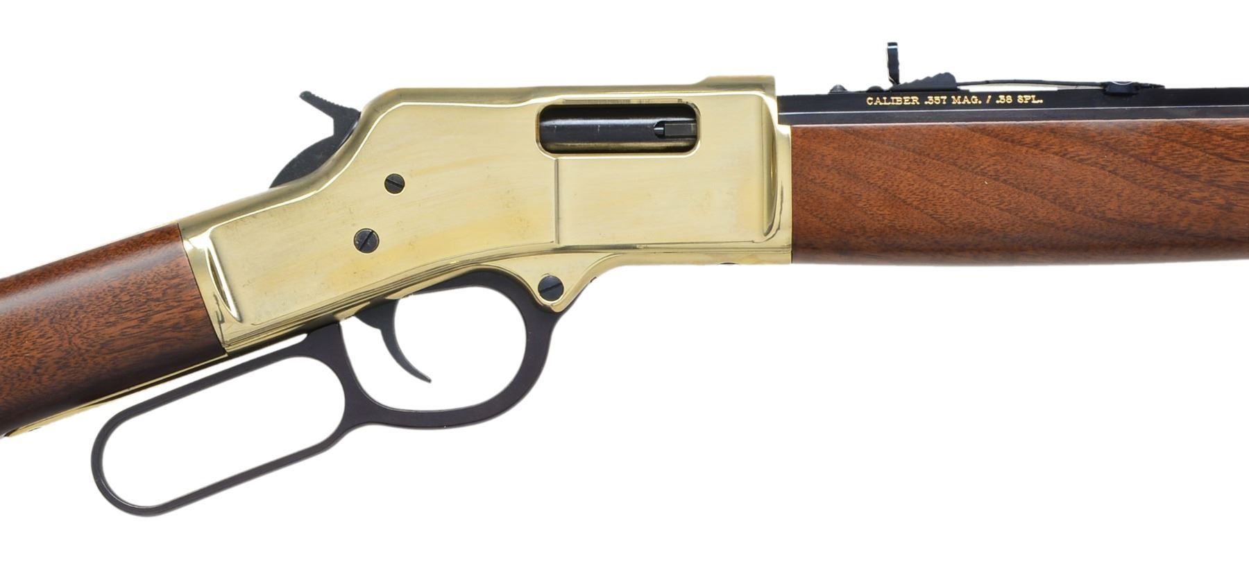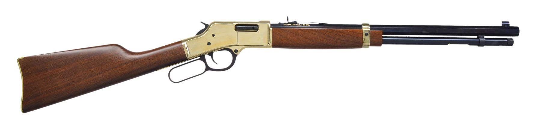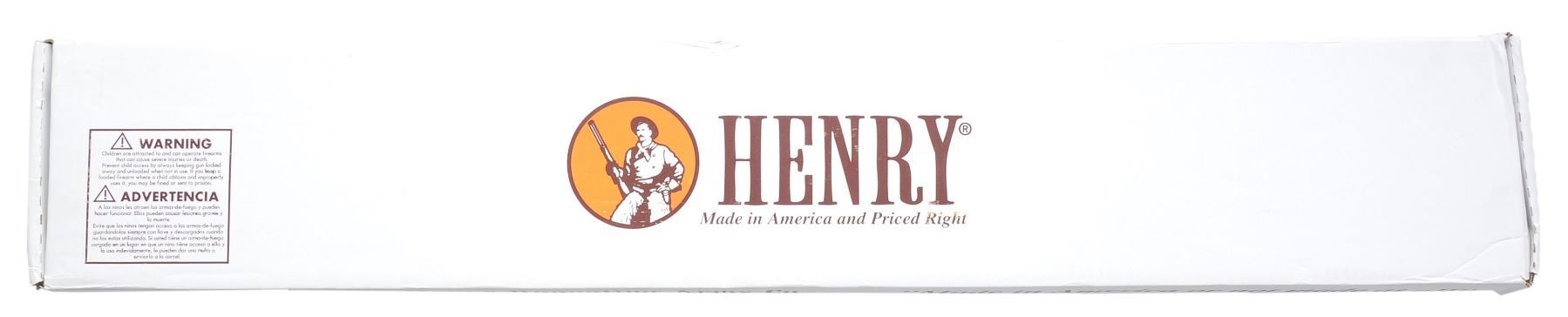 BOTH: bbls. 20". Full length tubular mag., gold finished receivers, bbl. bands & carbine buttplates. Satin finished walnut stocks & forends. 1) HENRY H009B. Cal. 30-30. S# TTB004307. UNATTACHED ACCESSORIES: original box, instruction manual, instruction tag & action cloth cover. Condition: near new in box. Near excellent bore. (20-1382/DS). 2) HENRY BIG BOY. Cal. 357 Mag./38 Spl. S# BB0014977M. UNATTACHED ACCESSORIES: original box containing instruction manual, inspection & warning tags plus cloth action cover. CONDITION: near new in box. Near excellent bore. (20-1383/DS). BOTH MODERN. $1,200-1,600.