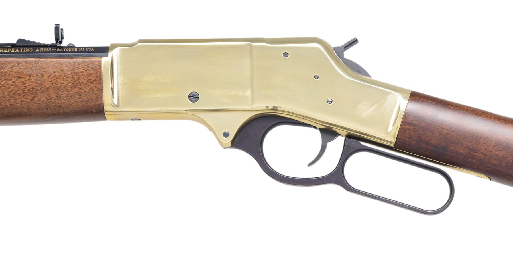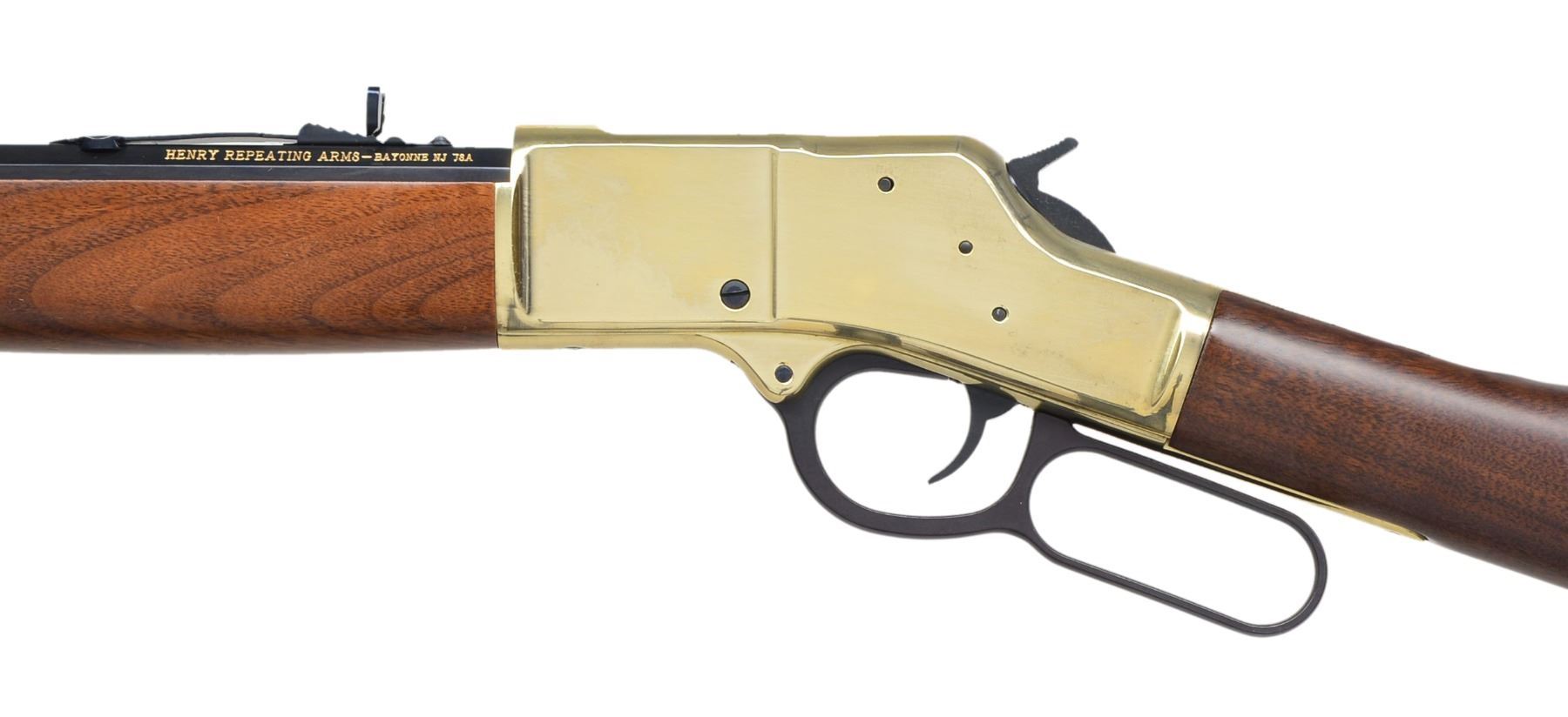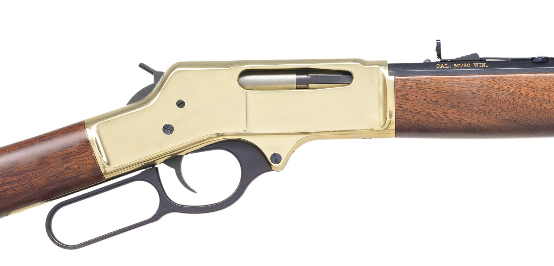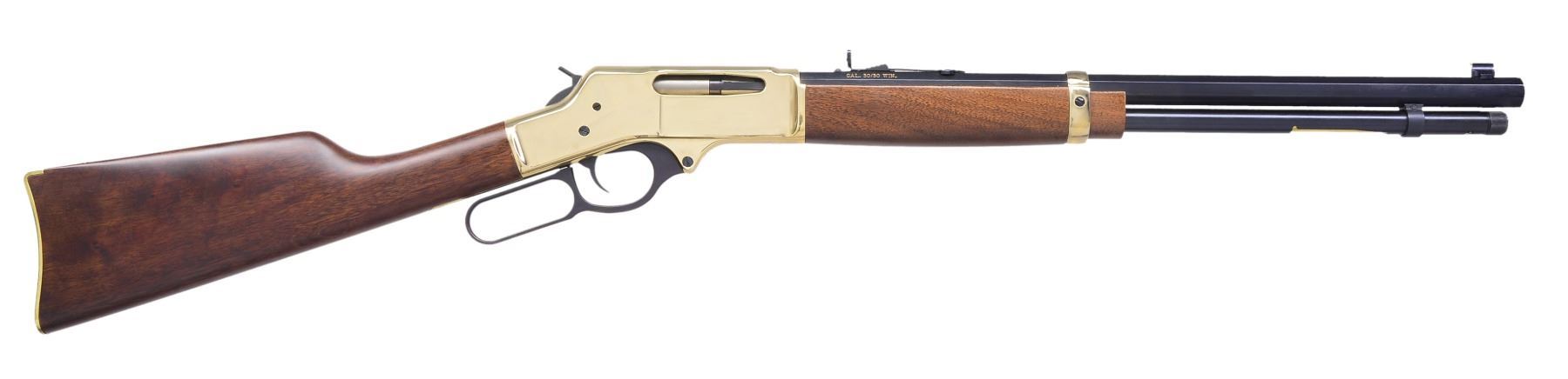 BOTH: bbls. 20". Full length tubular mag., gold finished receivers, bbl. bands & carbine buttplates. Satin finished walnut stocks & forends. 1) HENRY H009B. Cal. 30-30. S# TTB004307. UNATTACHED ACCESSORIES: original box, instruction manual, instruction tag & action cloth cover. Condition: near new in box. Near excellent bore. (20-1382/DS). 2) HENRY BIG BOY. Cal. 357 Mag./38 Spl. S# BB0014977M. UNATTACHED ACCESSORIES: original box containing instruction manual, inspection & warning tags plus cloth action cover. CONDITION: near new in box. Near excellent bore. (20-1383/DS). BOTH MODERN. $1,200-1,600.