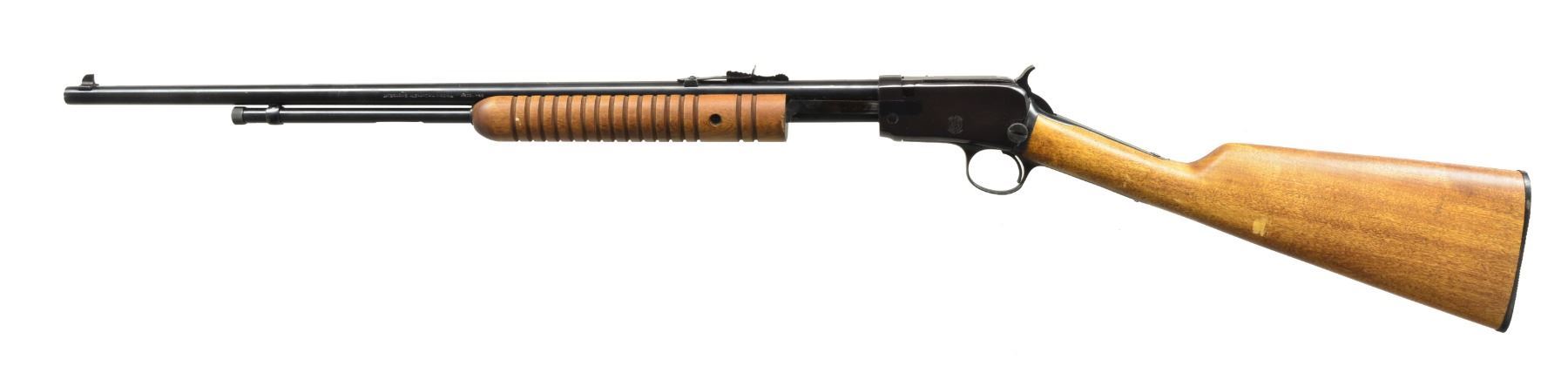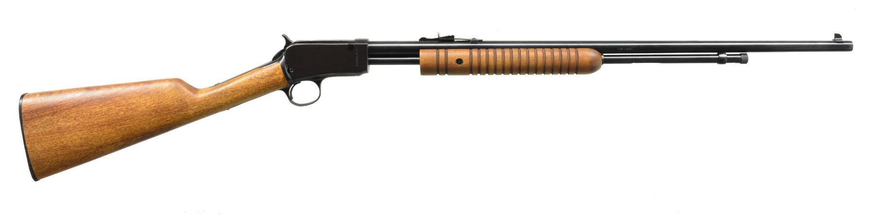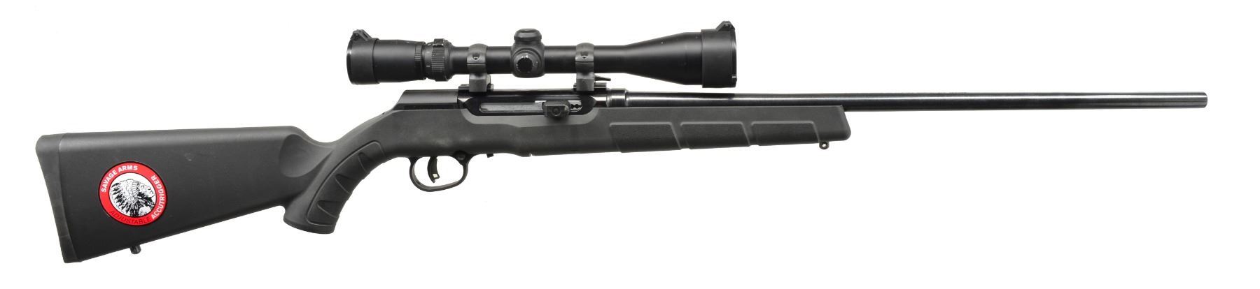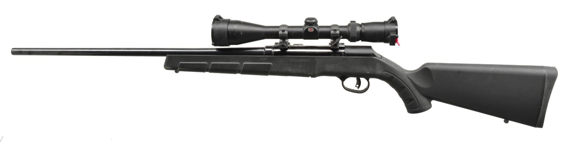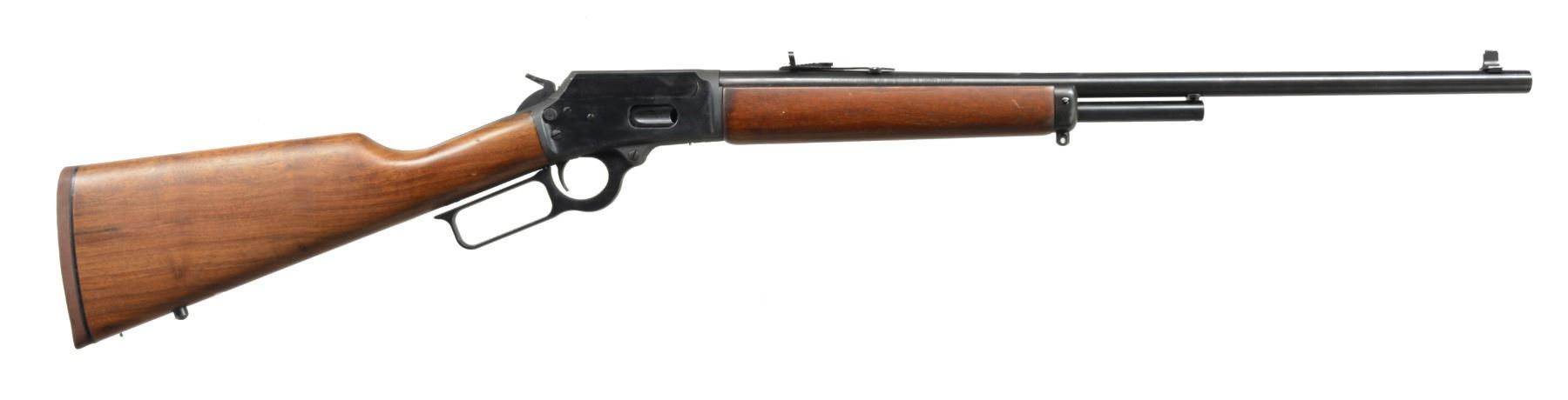 1) ROSSI M59 22 MAG. GALLERY GUN. Cal. 22 Mag. Bbl. 23". S# H014342. Slide action, tube fed, 22 Mag. copy of the Winchester 1890 Gallery Model rifle. Rnd. bbl. w/ blade front sight & elevation adj. rear sight. Deep blue finish w/ hardwood stocks & exposed hammer. CONDITION: front handguard is in extremely nice condition w/ no noticeable defects. Rear stock has few impressions. Bluing coverage is dark & consistent. Bore is bright w/ well pronounced rifling. Fire control mechanism appears to function correctly when cycled by hand. (20-1102/JZ). 2) SAVAGE A17 17 HMR SEMI AUTO RIFLE. Cal. 17 HMR. Bbl. 22". S# J731623. Deep blue finish w/ synthetic stock. Delayed blowback action. Drilled & tapped receiver w/ bases 3-9x40 5-Star Scope. 10 Shot rotary 10 rd. mag. similar in style to the popular Ruger 10-22. Front & rear sling studs & factory rubber recoil pad. Extended cocking handle plus AccuTrigger system. MAGS: 1 factory 10 rd. mag. CONDITION: exposed steel retains its original bluing w/ complete coverage. Stock still retains original "Savage" sticker indicative of very little field use. Scope has areas of missing finish but still appears clear. Clean bore w/ strong rifling. Fire control mechanism appears to function correctly when cycled by hand. (20-1115/JZ). 3) MARLIN MODEL 1894 CL CLASSIC 218 BEE LEVER ACTION. Cal. 218 Bee. Bbl. 22". S# 09069989. Blue finish, hardwood forend & stock, lever action tube fed, sling studs front & rear, exposed hammer w/ cross block safety. Front blade sight & rear elevation adj. buckhorn sight. Factory recoil pad w/ black spacer. UNATTACHED ACCESSORIES: lot accompanied by factory shipping box. CONDITION: original factory finish, lightly marred by what appears to be rack/storage wear. Finish wear on parts w/ mechanical intervention would indicate very little field use. Bright bore w/ strong rifling. Fire control mechanism appears to function correctly when cycled by hand. (20-1118/JZ). ALL MODERN. $900-1,400.