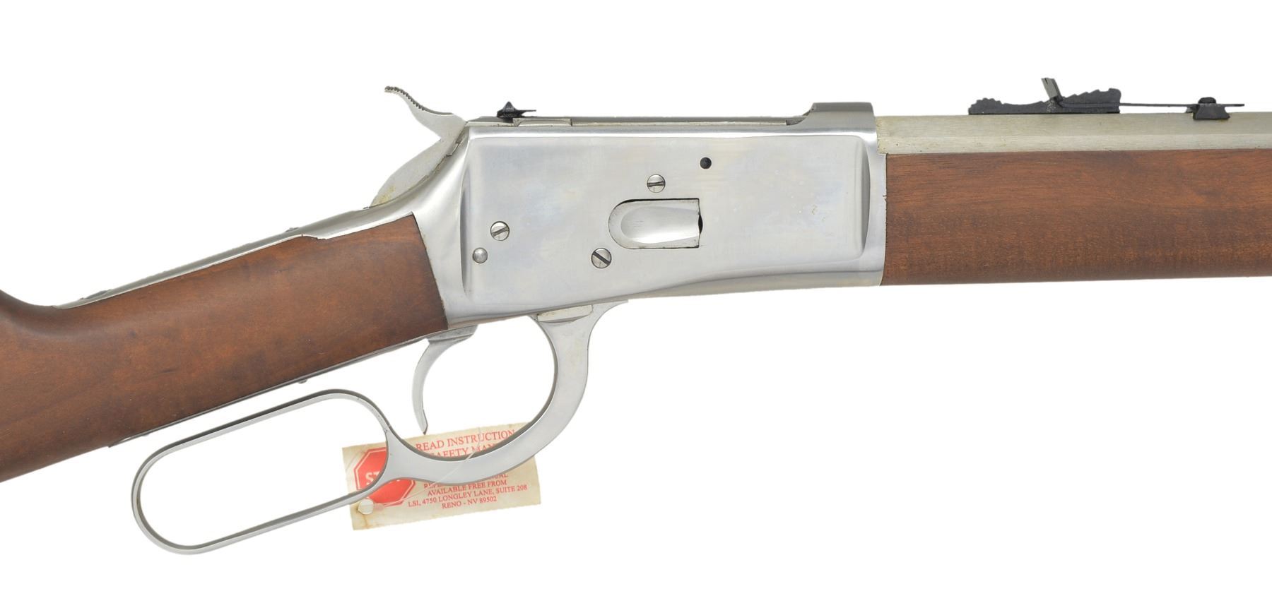 Cal. 45 Colt. S# SS094391. Bbl. 24" oct. w/ sporting sights. Full length mag. Stainless steel construction. Bolt has manual safety. Hardwood forearm & straight grip stock w/ crescent steel buttplate. Mfg. in Brazil & imported by LSI of Reno, NV. UNATTACHED ACCESSORIES: original box containing instructions & parts list. CONDITION: as new in box. (20-212/DS). MODERN. $350-500.