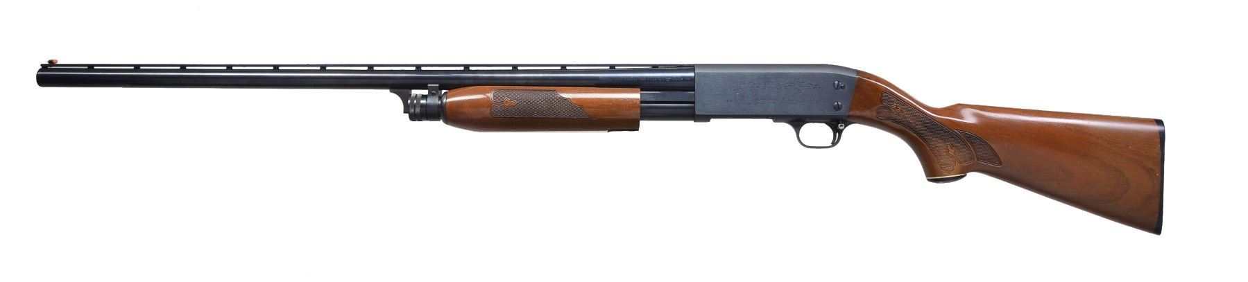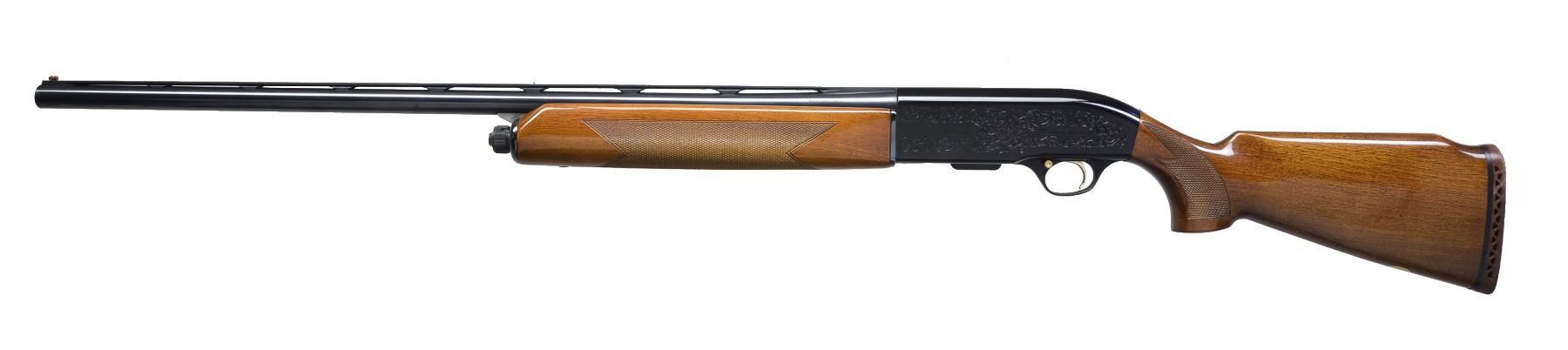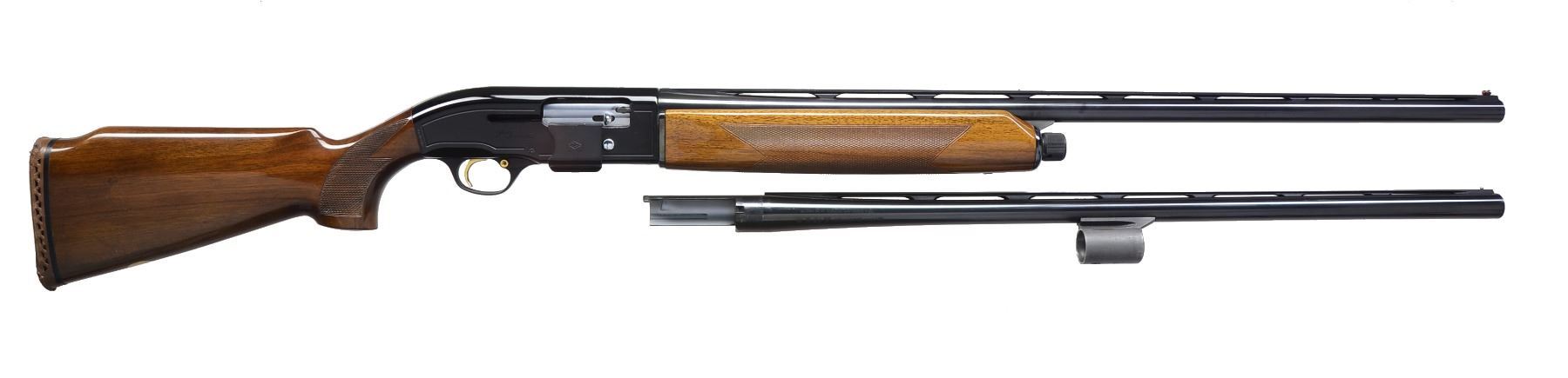 1) ITHACA 37 FEATHERLIGHT PUMP. Cal. 12 Ga., 2 3/4". S# 371618341. Bbl. 28" VR w/ Raybar front sight. Blue finish. Action has game scene ornamentation. Gloss finished forearm & capped pistol grip stock of nicely grained black walnut w/ pressed checkering. LOP: 14" over original buttplate. CONDITION: retains over 98% original blue showing slide wear on mag. tube. Stocks have very good finish. Bore is generally bright shows some light plastic fouling. (20-221/DS). 2) BERETTA A-302 SPECIAL TRAP AUTOLOADER. Cal. 12 Ga., 2 3/4". S# G88903E. Bbl. 30" VR w/ fixed Full chokes. Red target front sight w/ steel mid bead. Black finished alloy action w/ scroll ornamentation. Silver finished trigger & gold finished crossbolt safety. Action is fitted w/ TS shell catcher. Walnut forearm & Monte Carlo pistol grip stock w/ cut checkered & high gloss finish. Toeline has oval name plate. LOP: 14 3/8" over original Beretta brown ventilated pad. CONDITION: over 98% metal finish. Very good wood finish showing a few sm. marks. Very good bright bore. (20-222/DS). 3) BERETTA A-303 SPECIAL TRAP AUTOLOADER. Cal. 12 Ga., 2 3/4". S# L20607E. Bbl. 30" VR w/ fixed Full choke. Red target front sight w/ steel mid bead. Black finished alloy action w/ gold finished trigger & crossbolt safety. Action fitted w/ TS shell catcher. Walnut forearm & pistol grip Monte Carlo stock of gloss finished walnut w/ cut checkering. Toeline has oval nameplate. LOP: 14 3/8" over Beretta brown ventilated pad. UNATTACHED ACCESSORIES: spare bbl. that will fit either the 302 or 303 action. 26 1/2" w/ VR & steel bead. Bbl. is fitted w/ factory Mobile chokes, IC tube included. Also includes a Model A 303 instruction manual. CONDITION: 98% metal finish. Wood has good finish showing light scratches w/ sm. chip behind receiver. Recoil pad is crushed & age hardened. Very good bright bore. Spare bbl. retains over 95% blue & good bright bore. (20-223/DS). ALL MODERN. $900-1,350.