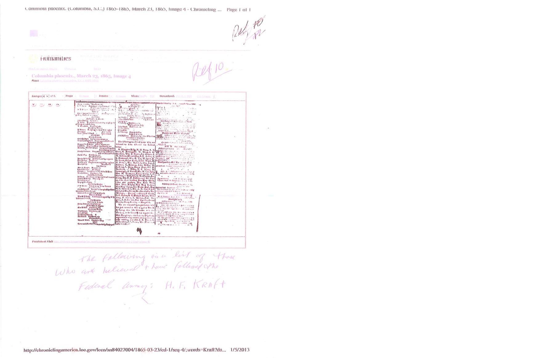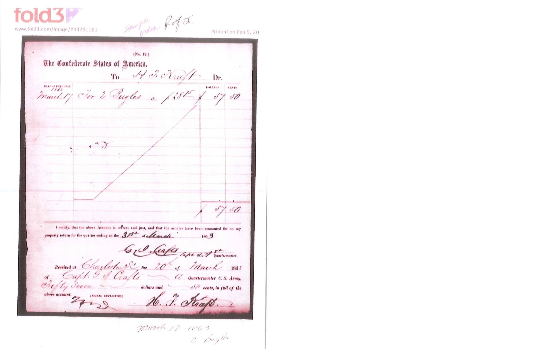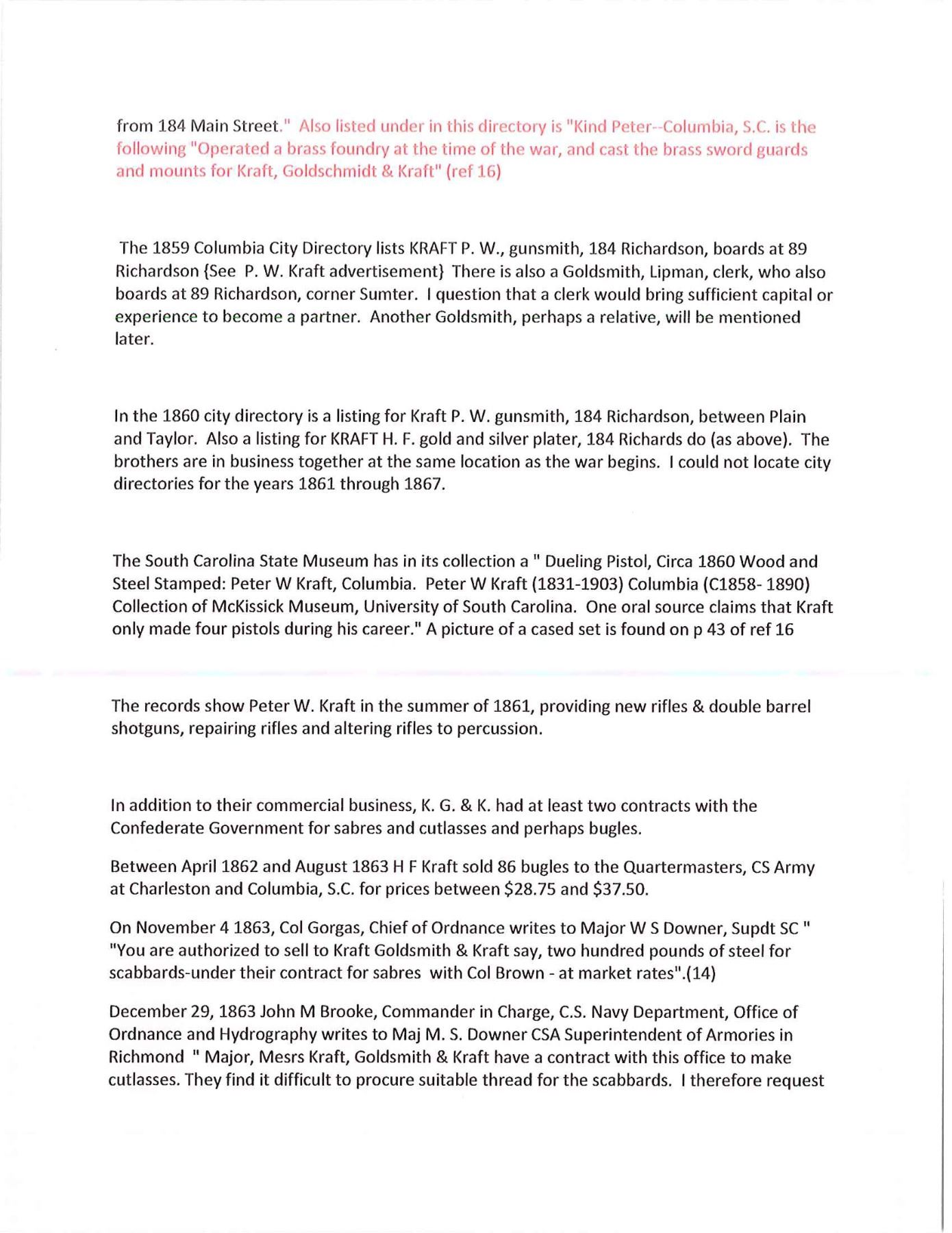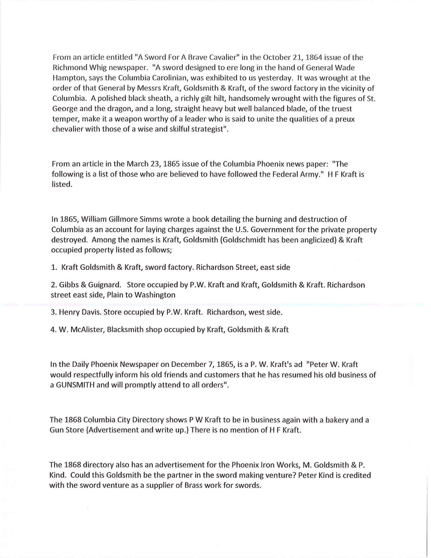 OF MISSOURI SOLDIER. This is one of perhaps 20 identical Bowies in existence today mfg. by K, G & K of Columbia, South Carolina. It is not a cut down sword, but was originally mfg. in this configuration w/ the clip point formed in the original forging process. The brass guard has only 2 branches. The straight blade, brass ferrule at the base of grip & thin leather & sm. gage iron wire on the grip are all keeping w/ swords made by K, G & K. The Bowie is 25" long w/ a blade width at the guard of 1 3/6". The scabbard was not made specifically for this knife, but does fit well. The brass guard is inscribed w/ stamped lettering "W A Read and 1 MO Cal, CSA". Read enlisted in the partisan ranger unit on July 25th, 1862 after at Wilsons Creek where he was wounded in 1861. The unit was formed by Major General Hindman, CSA, under the command of Col. J. C. Porter, a veteran of Wilsons Creek to tie up Union troops & recruit soldiers for Arkansas. The unit fought in sm. skirmishes or battles in northern MO at Florida, Moore's Mill, Kirksville, & Palmyra. On his amnesty report, Read is described as 33 years old, 5'8" tall w/ blue eyes & dark hair. Exploits of the 1st NE MO Cavalry are found in the OR's, the book, "With Porter in North Missouri", by Joseph A. Mudd & The Winter 200 edition of Blue & Gray magazine. UNATTACHED ACCESSORIES: a well researched 10 page unpublished article on this knife. CONDITION: very good overall. Hilt has untouched chocolate/mustard colored patina. Markings in guard are not typical of war time use, but could be a commemorative addition. Regardless; this is a fine example of the only K G & K made knife featured in "Confederate Bowie Knives", pg 108 by Melton, Phillips & Sexton. Blade is extremely sharp & gray overall w/ scattered staining & light pitting. Grip is missing 90% of its leather & retains only 2 strands of well patina iron wire. Grip has 2 lg. aged cracks. Accompanying scabbard is solid & fits sword well. PROVENANCE: Herbert "Bert" Murch Collection. (02-13419/JS). $800-1,200.