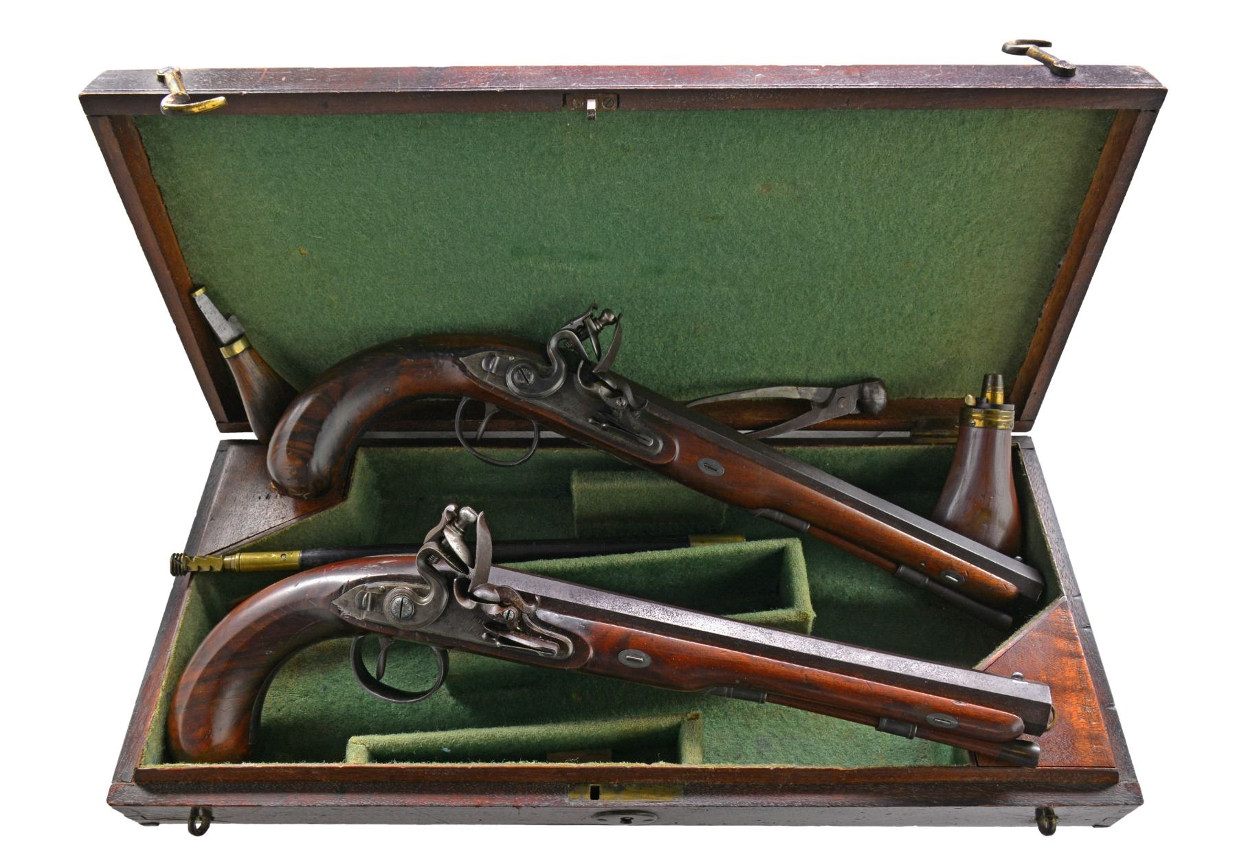Lot 3315 HIGH QUALITY CASED PAIR OF FLINTLOCK DUELING/